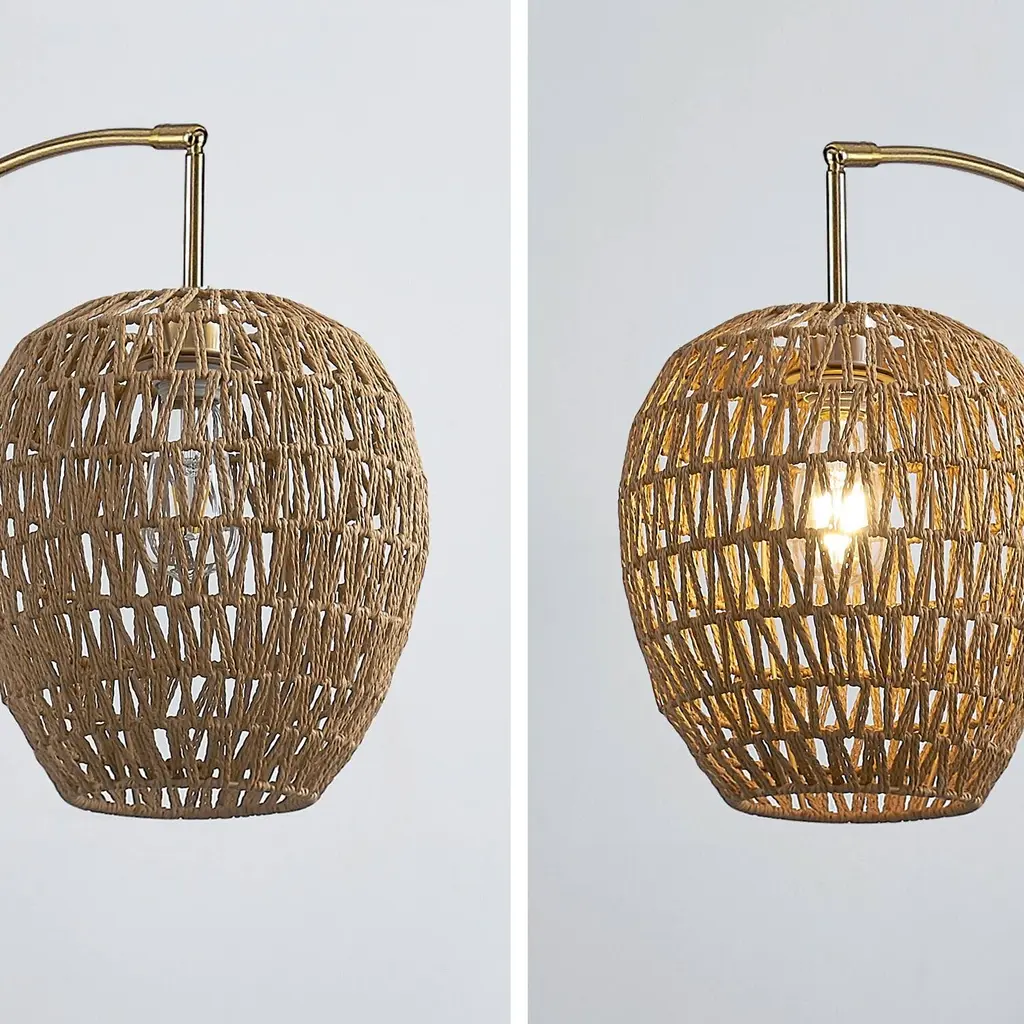 HOMEGLAM woven rattan shades lamp series, features large 83”H 3 lights arched design with hand crafted woven rattan shades. the functional swivelable lamp arc branches can be adjustable light positions, with easy on pole 4 way rotary switch for all-two-one and off light controls. the HOMEGLAM creative woven rattan shade lamps bring a decorative accent and contemporary natural ambiance in your space.• 83"H, 48" max. reach, 3 level height swivel lamp arches • 10"ø, 11" tall hand crafted woven rattan lamp shades• Strong steel construction with steady heavy weighted luxury marble base • Easy reach on pole rotary 4-Way switch for control all-two-one and off lights • Uses 3 pcs 60W max. incandescent or equivalent led bulbs, *Bulbs not included • UL Listed, assembly required