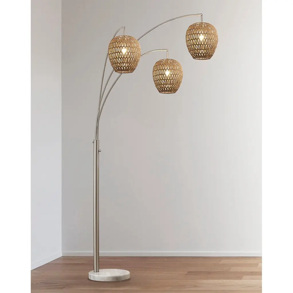 Homeglam 83" 3-Light Oval Woven Rattan Arched Floor Lamp - Brushed Nickel