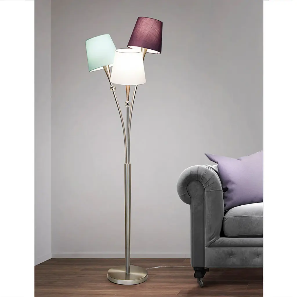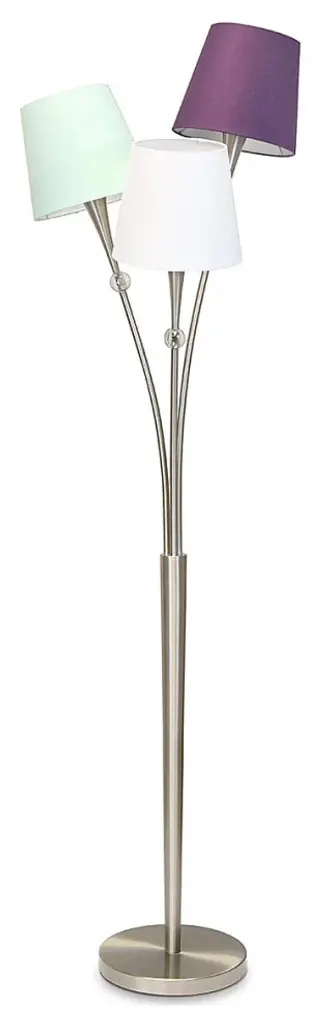 HOMEGLAM design, the Blossom 3 arm light design metal floor lamp with crystal balls brings additional perfect light, style and value to your space. FEATURES: • 68"�H 3- Light metal floor lamp with crystals • 3 fabric lamp shades : 9" x 7-3/4"�H • Turn adjustable lamp branch arms and heavy weighted lamp base • Easy control inline foot on/off switch • Uses 3pcs 40W Max. Incandescent or equivalent LED bulbs, • BULBS NOT INCLUDED • UL Listed, assembly required
