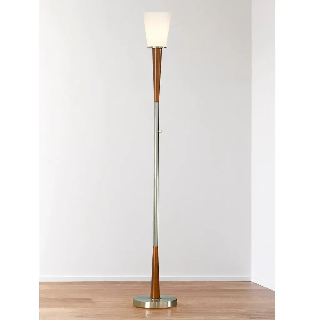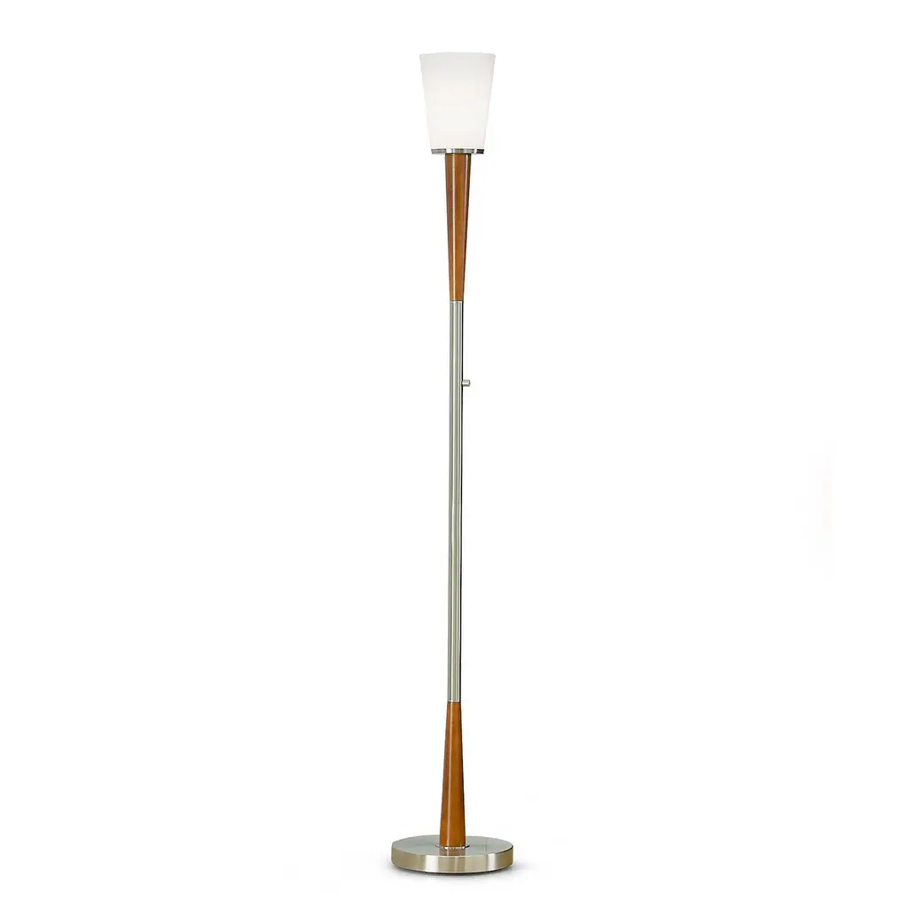 HOMEGLAM design, the Century retro design wood floor lamps with rotary dimmer switch and a LED bulb included. It is a perfect lighting additions to decorate your space with style and value • 72"H Hard wood metal torchiere floor lamp • 8.25"ø frosted white glass shade, 11"ø heavy weighted Base • Rotary Dimmer Switch with LED bulb included • uses one A19 100W max. equivalent LED led bulb, *Bulb included • UL Listed, Assembly required