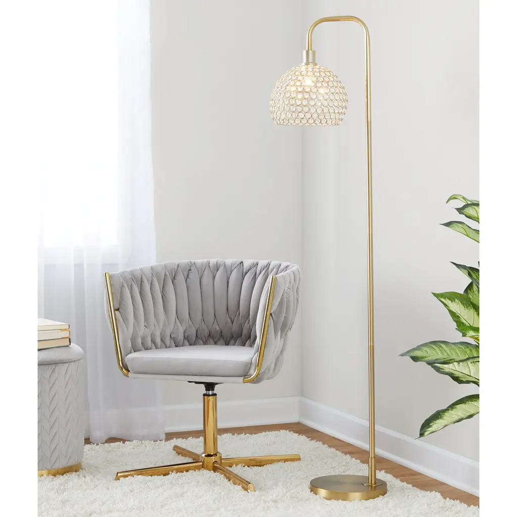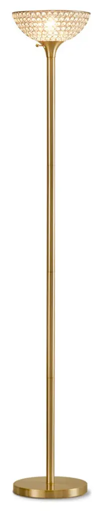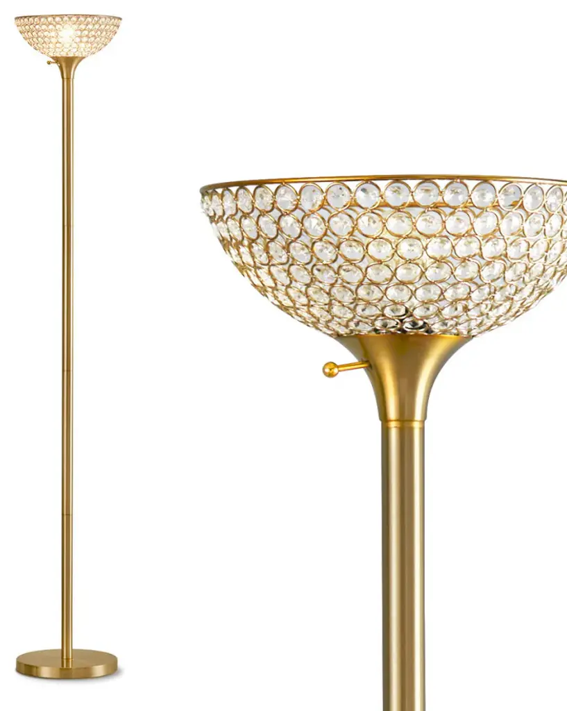 Homeglam Lucie 71-Inch Crystal Shade Torchiere Floor Lamp, Antique Brass