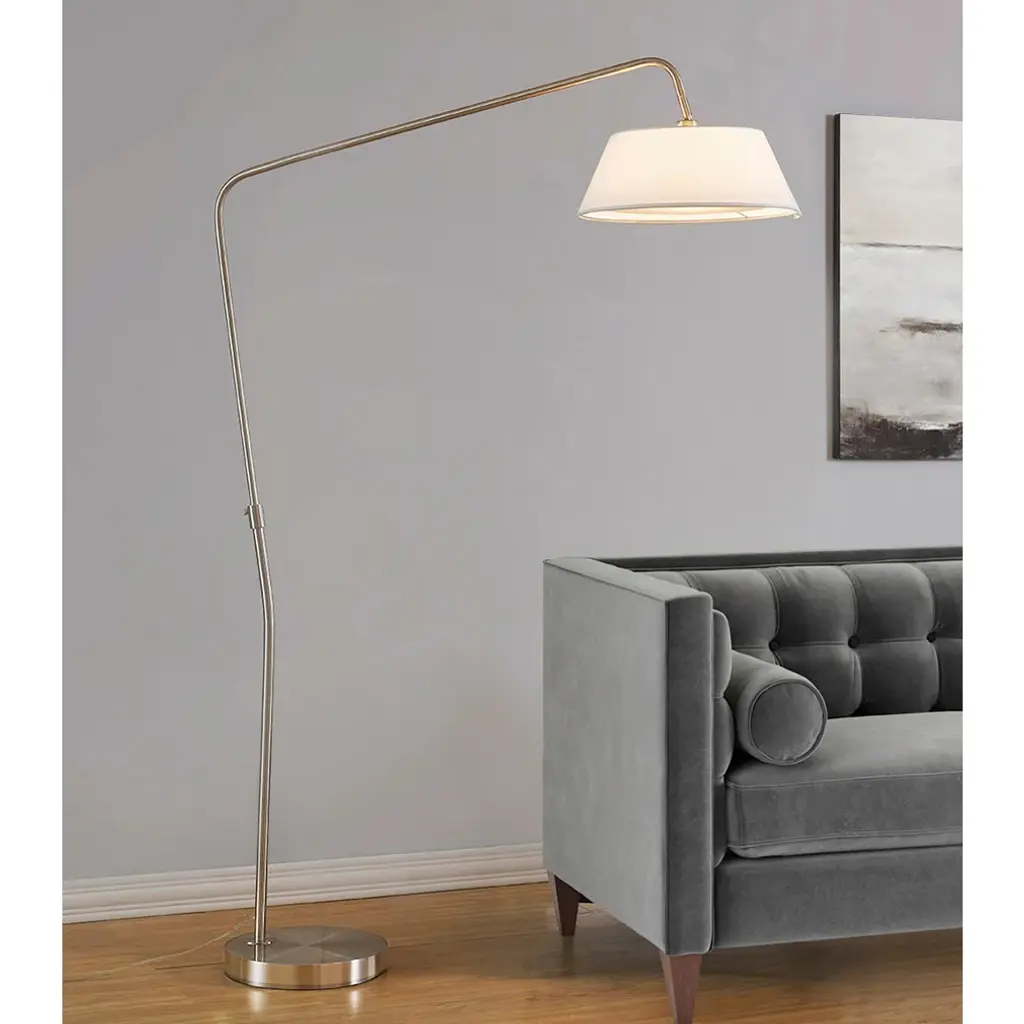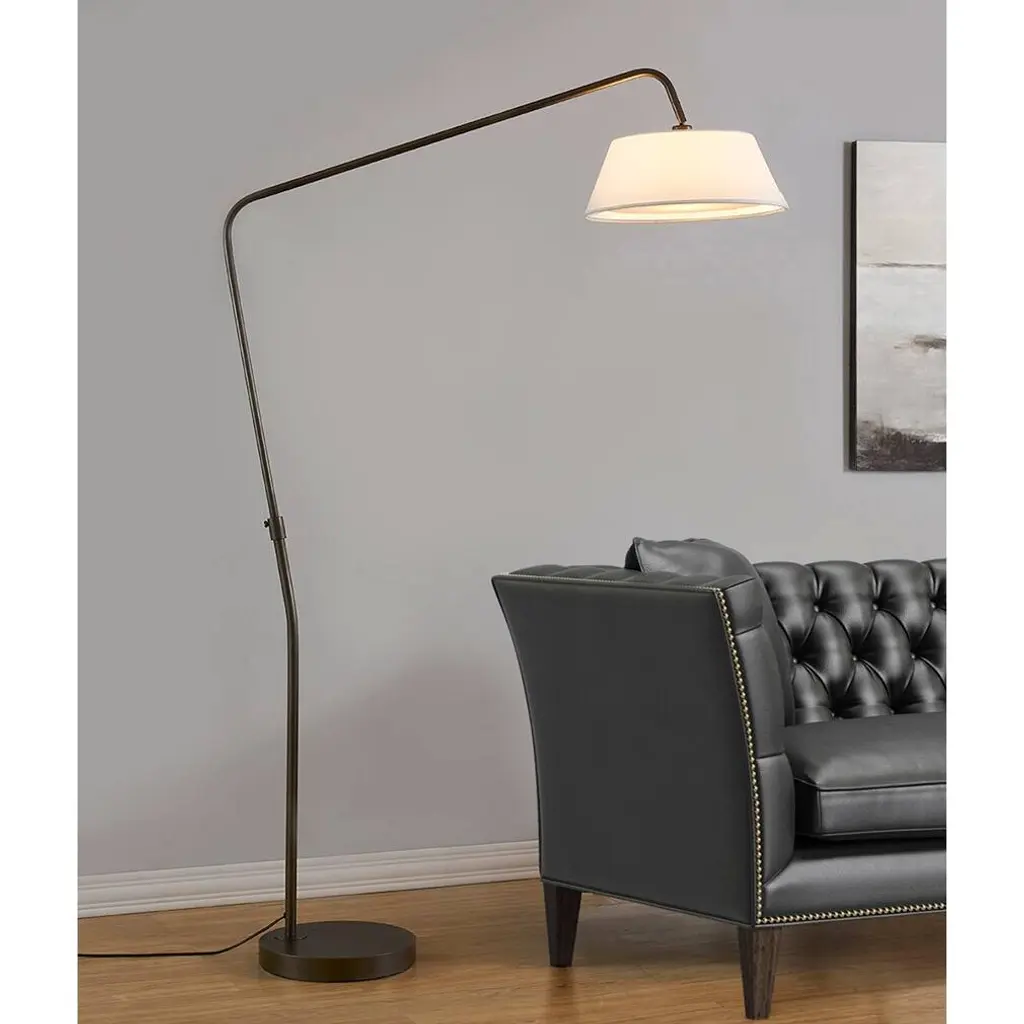 This eye-catching metal floor lamp, flaunting a decidedly mid-century modern pop, comes in your choice of antique brass, dark bronze, or brushed nickel. Its timeless metallic arch floor lamp silhouette is bound to become a personal favorite for years to come.Features:Dimensions:Assembly required