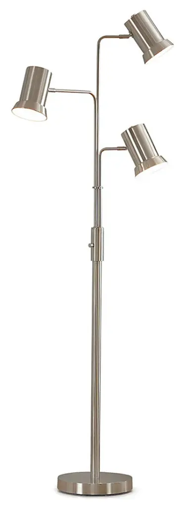 This contemporary design metal floor lamp is available in three different finishes and is perfect to add some delicate lighting to any space. It is equipped with light arms that swivel and lamp shades that tilt. It is a perfect additions to decorate your space with style and value.Features: Swivel function 3 light floor lamp5.5-inch metal lamp shade11.75-inch heavy weighted base4-way rotary switchUses three A19 60W max. equivalent LED led bulb, • Bulbs not includedUL listedAssembly required 73 inches high