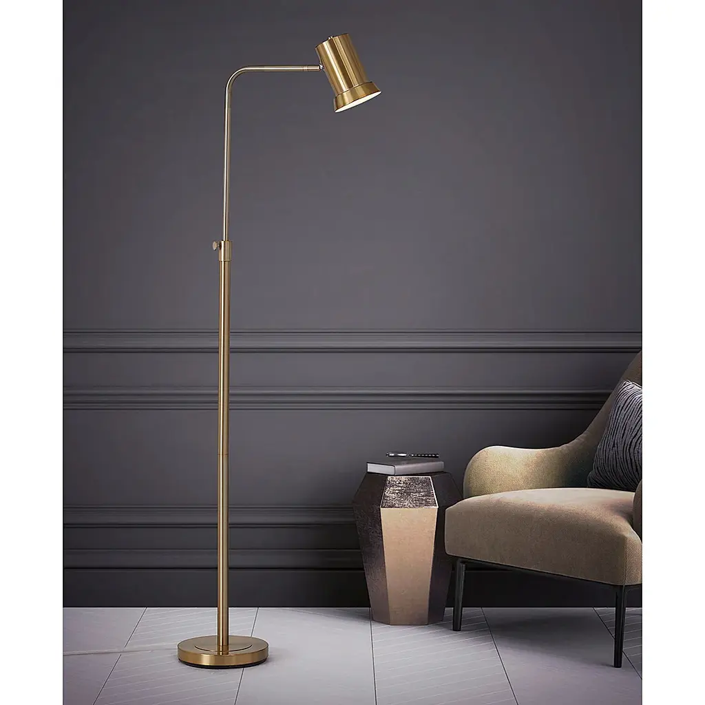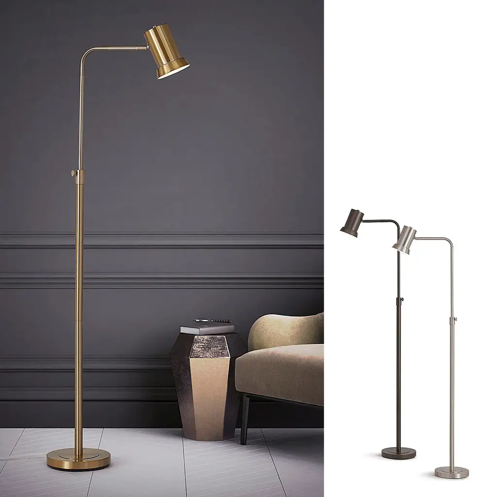 HOMEGLAM design, the Studio one light adjustable height contemporary style metal floor lamp with swivelable light arms and tiltable lamp shade. It is a perfect additions to light your space with function and styleFeatures: • Adjustable 53"~70"H, metal construction floor lamp • Functional swivel lamp arm, tiltable lamp shade • 6.5"ø tiltable metal lamp shade, 11"ø heavy weighted base • inline foot step on/off switch • Uses one A19 60W max. equivalent LED led bulb, *Bulbs not included • 110V, UL Listed, Assembly required