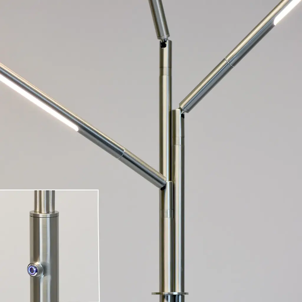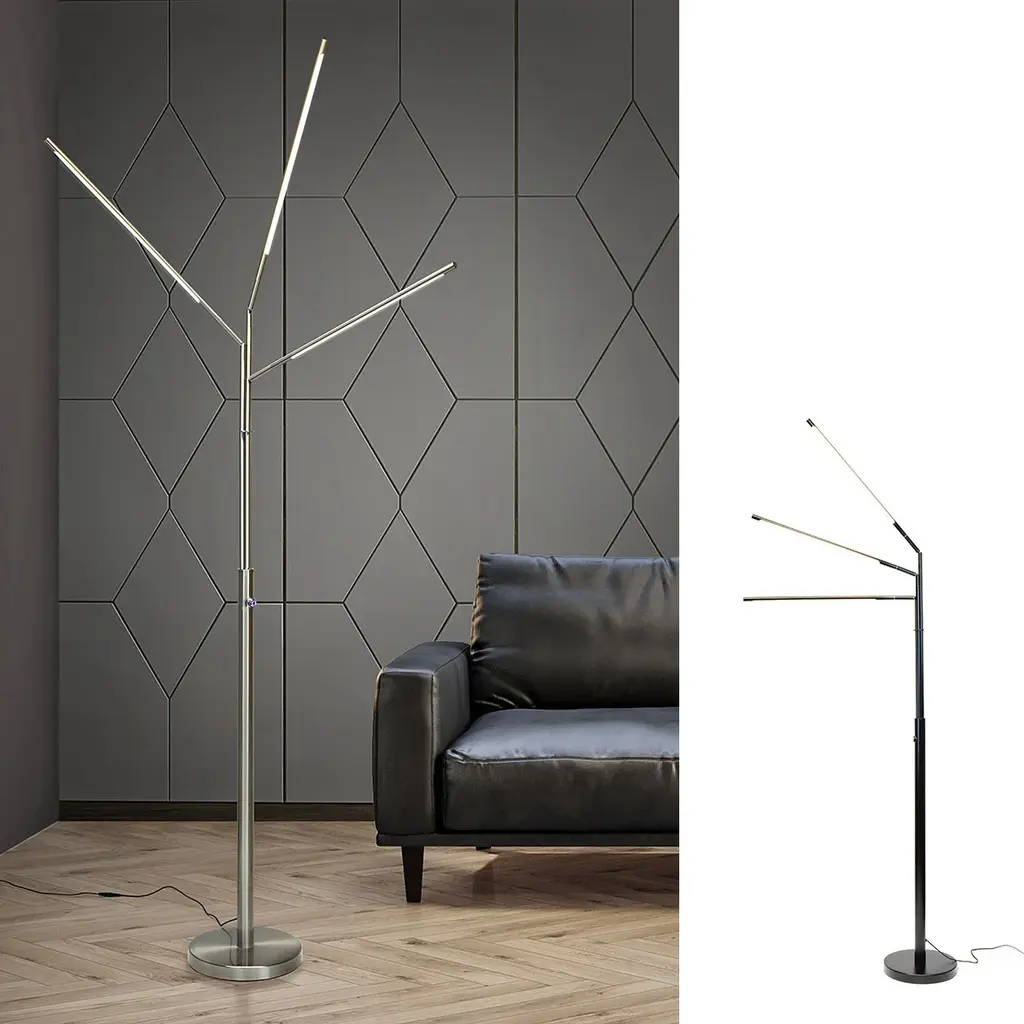 HOMEGLAM design, the Terminals LED big floor lamp brings the functional and stylish linear high bright LED light to your space. The built in LED floor lamp designed with easy reach 4 bright levels touch dimmer. it's perfect style lighting for your living room, personal couch or even to your office spaces…FEATURES:• Total 24W built-in high bright 3 X 8W each 3 arm led tubes • Energy save and long life span 3000K LED warm light • Easy reach 4 level touch dimmer: high, med, low and off • Adjustable metal tubes to 95”H Max • UL LED driver, AC 100~240V input, DC24V 1.5A output • Assembly required