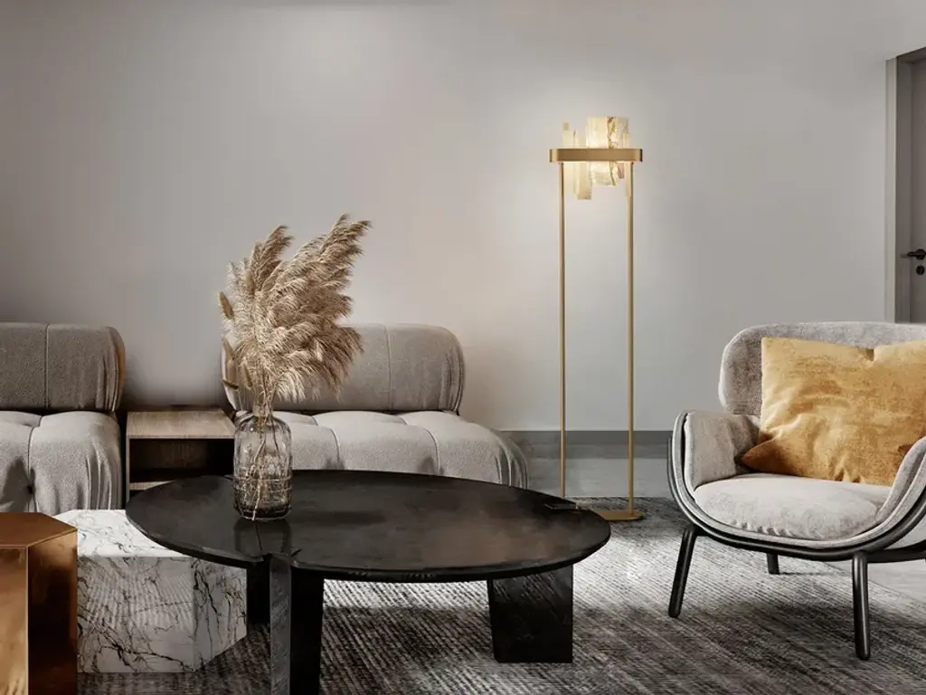 Honicé STL is an LED floor lamp. Metal frame in matt gold finishing. Natural onyx diffusor.Light sourceUP: LEDX6 W CRI>95 3000K 860 LMDOWN: LEDX6 W CRI>95 3000K 860LMDIMMABLE:OWN BUTTONUP: LEDX6 W CRI>95 2700K 610 LMDOWN: LEDX6 W CRI>95 2700K 610 LMDIMMABLE:OWN BUTTONCE LEDCCC LEDHonicé is a collection of lamps with a metal structure in matt gold finish with a natural onyx diffuser.