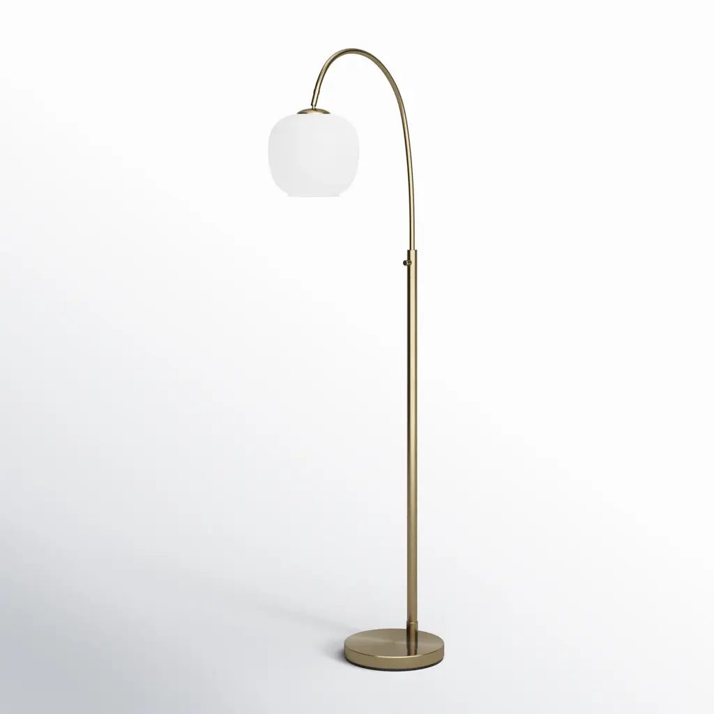 Bring an elegant modern accent to your living spaces with the elegant and appealing Horizon Floor Lamp from Robert Abbey. Steadied by a sleek disc base made from metal, it sends up a single stem that rises high before curving over to point the fixture’s powerful lamping downwards. The simplicity of the metal structure serves to further highlight the round, contoured glass shade that wraps the lamping, taking its inspiration from more traditional beehive glass designs. The shade draws the eye while blunting direct brightness from the sides to a warm, even glow that glitters off the metalwork below.