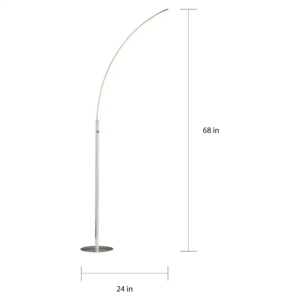 Brighten up any space with the Horizon LED Arch Floor Lamp. This floor lamp boasts a sleek brushed nickel finish and comes with a convenient dimmer switch. Its arched design adds a stylish touch to any room while providing ample lighting.Features: