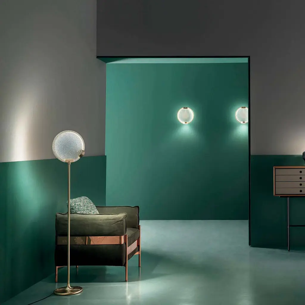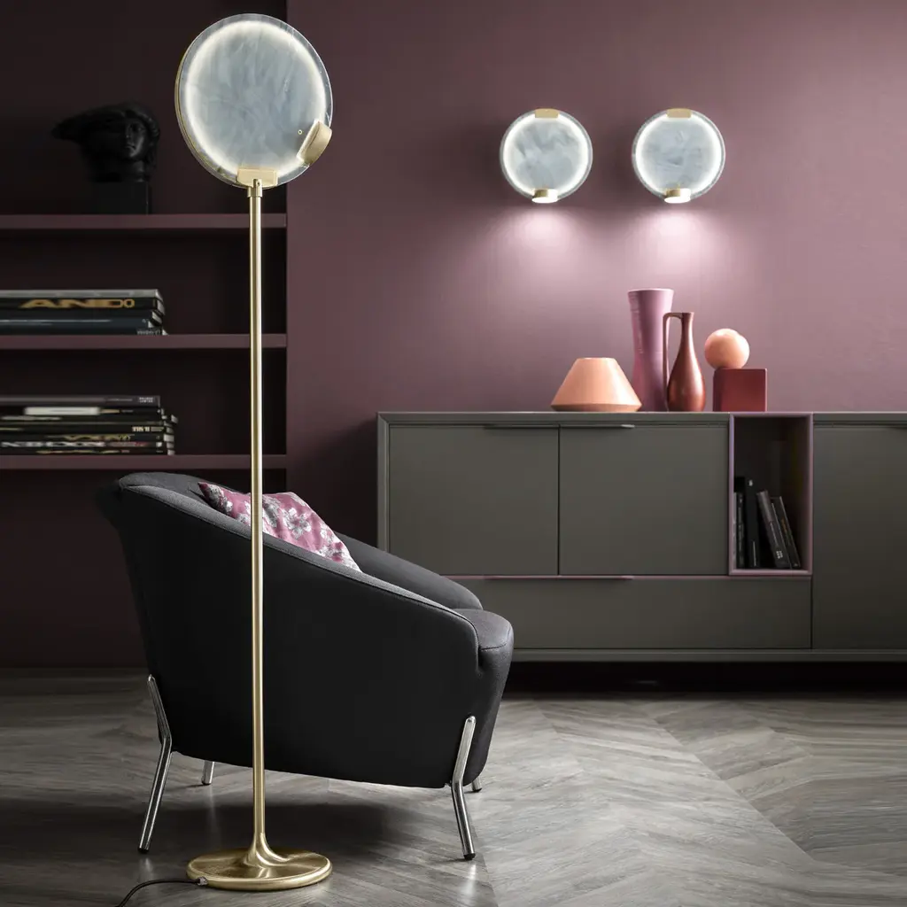 Bring superior Italian craftsmanship and a sculptural silhouette to your home with the Horo LED Floor Lamp from Masiero. Crafted with a sleek metal disc base and a striking vertical ring structure, it contains energy-efficient LED lamping within a textured prism glass diffuser, ensuring a glare-free display of light in any interior. Highlights