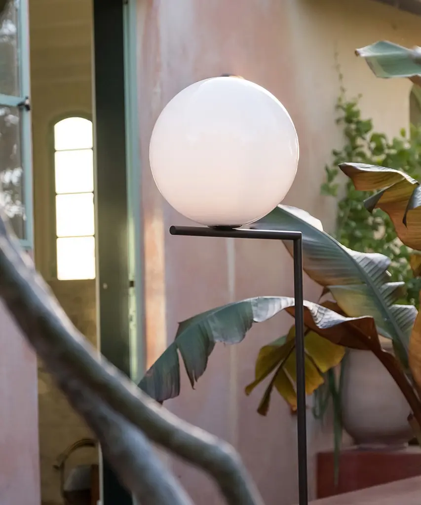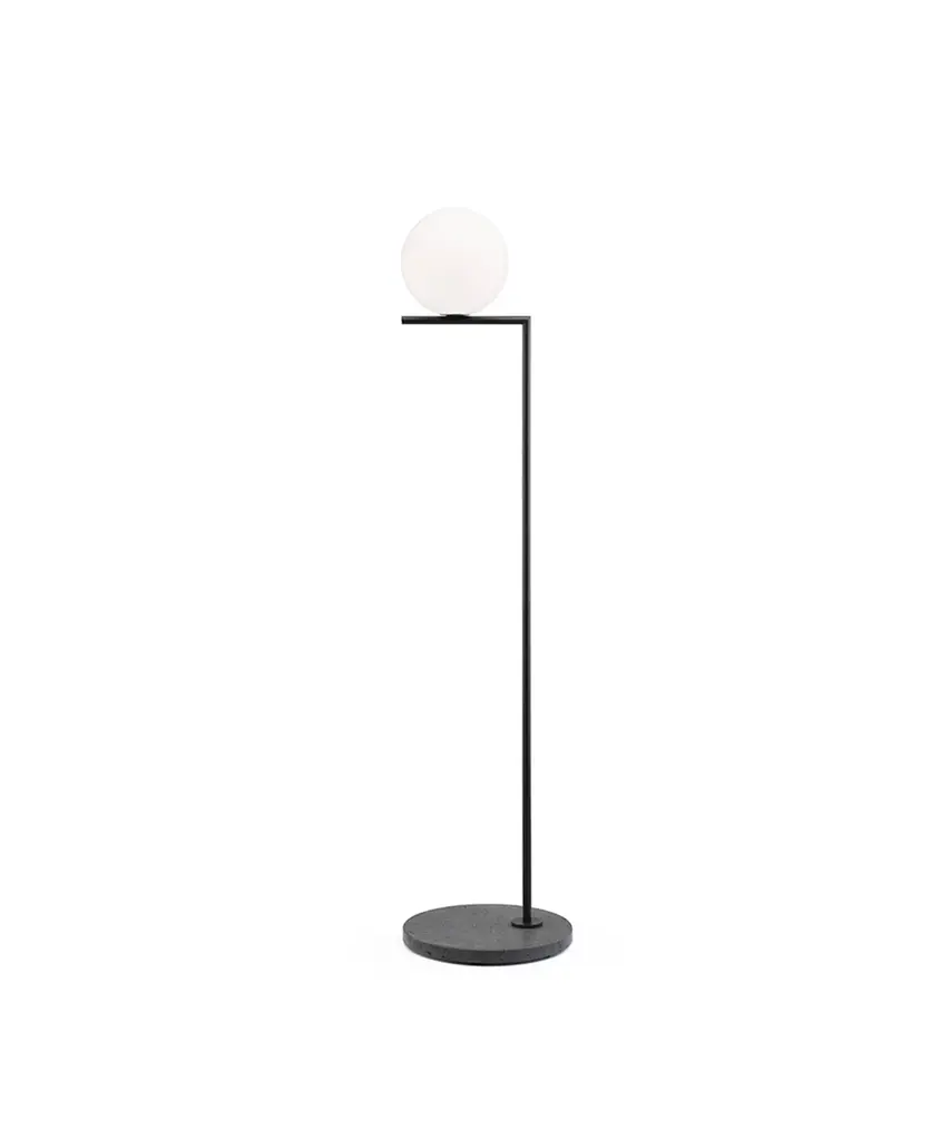 Designed by Michael Anastassiades in 2014, the IC lighting collection explores balance and simplicity of materials. For this minimalist collection, designer Anastassiades took inspiration from a video of a contact juggler spinning a set of spheres, balancing them around on his arms, and moving them to the tips of his fingers. Bulb not included. 5-m cable with Schuko IP44 plug suitable for outdoor use. Backlit floor dimmer switch on the IP65 cable enables ON/OFF function and brightness regulation 30-100% (with dimmable LED bulb). This authentic design is produced in Italy exclusively by Flos.