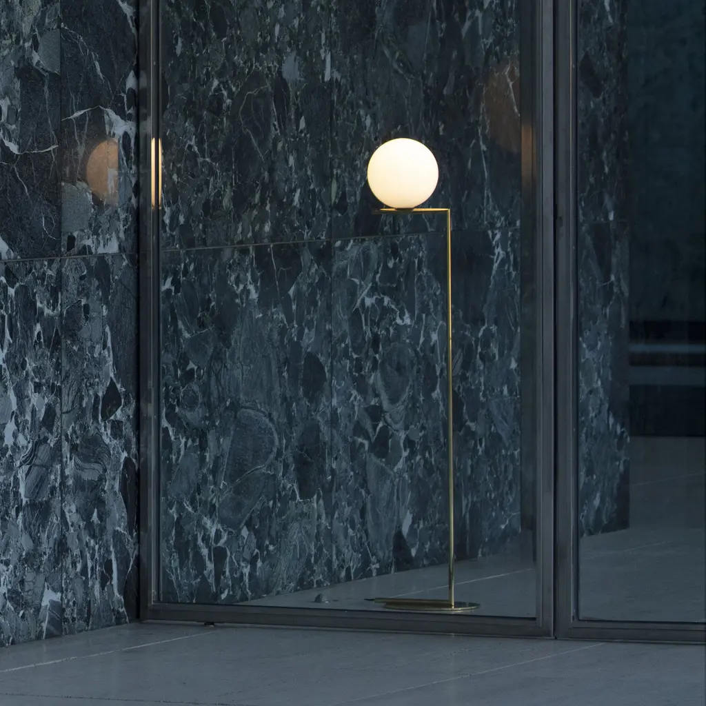 Perfectly balanced atop a thin metal arm, the glowing orb of the IC Lights Floor Lamp from FLOS ignites flawless illumination ready to accent any living or dining area. Designed by Michael Anastassiades, this eye-catching design is both minimalist and elegant, inviting curiosity even when not lit. Station in the corner of a lounge area to create an elevated reading nook or accentuate a living area with ease.Highlights