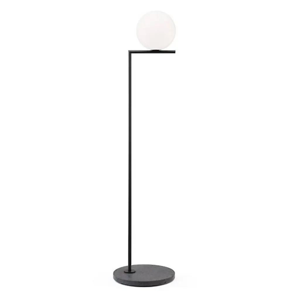 An elegant balancing act captured in time with shape and light. The IC Lights Outdoor Floor Lamp from FLOS is a minimalist piece conjured up by designer Michael Anastassiades as he studied the mesmerizing movement of a juggler's seemingly floating array of objects. The juggler ball carries the same charming spirit with this design's blown glass shade. Its metal frame stands gracefully with a focused figure, balancing the glass sphere with razer-sharp precision. A clean LED light shines through the sphere in a showstopping glow. An Italian stone base brings stability to the figural frame and a sophisticated surface.