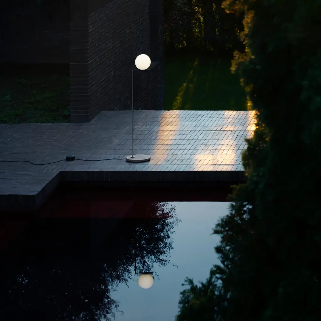 An icon moves outdoors Part of the iconic IC collection, the IC Outdoor Floor Lamp from FLOS is the first outdoor version from this stylish collection. Designed by Michael Anastassiades, this floor lamp is crafted from aluminum with a blown opal glass shade and balanced by a natural stone base for a contrasting touch of appeal. Ready to accentuate your outdoor lounge area or a covered patio, this outdoor floor lamp brings an industrial touch to your well-appointed home. Why We Love It: Features