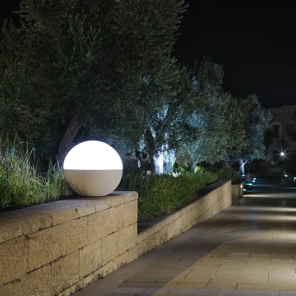 This sophisticated floor lamp by Simona De Iaco combines the effortless elegance of pure geometric volumes with bright-toned materials. Made of precious Lecce limestone and showcasing unrepeatable details, the lower half seamlessly adheres to the Plexiglass half-moon sphere, allowing for natural light diffusion. It is an ideal addition to contemporary patios or terraces. Available in other dimensions, please consult the concierge for details.