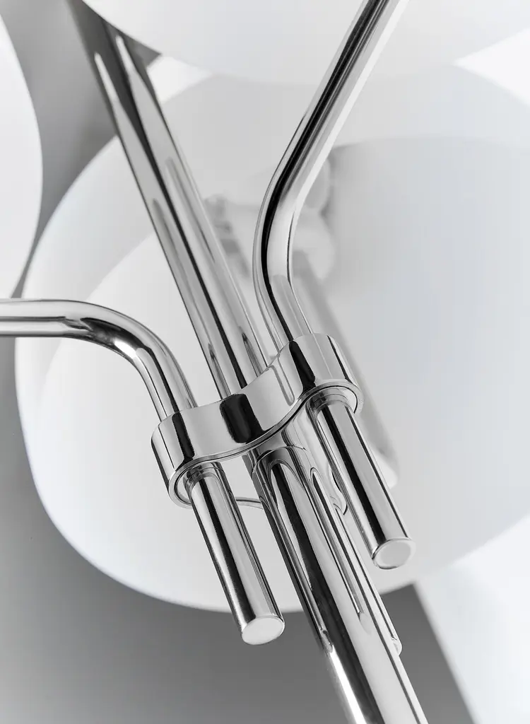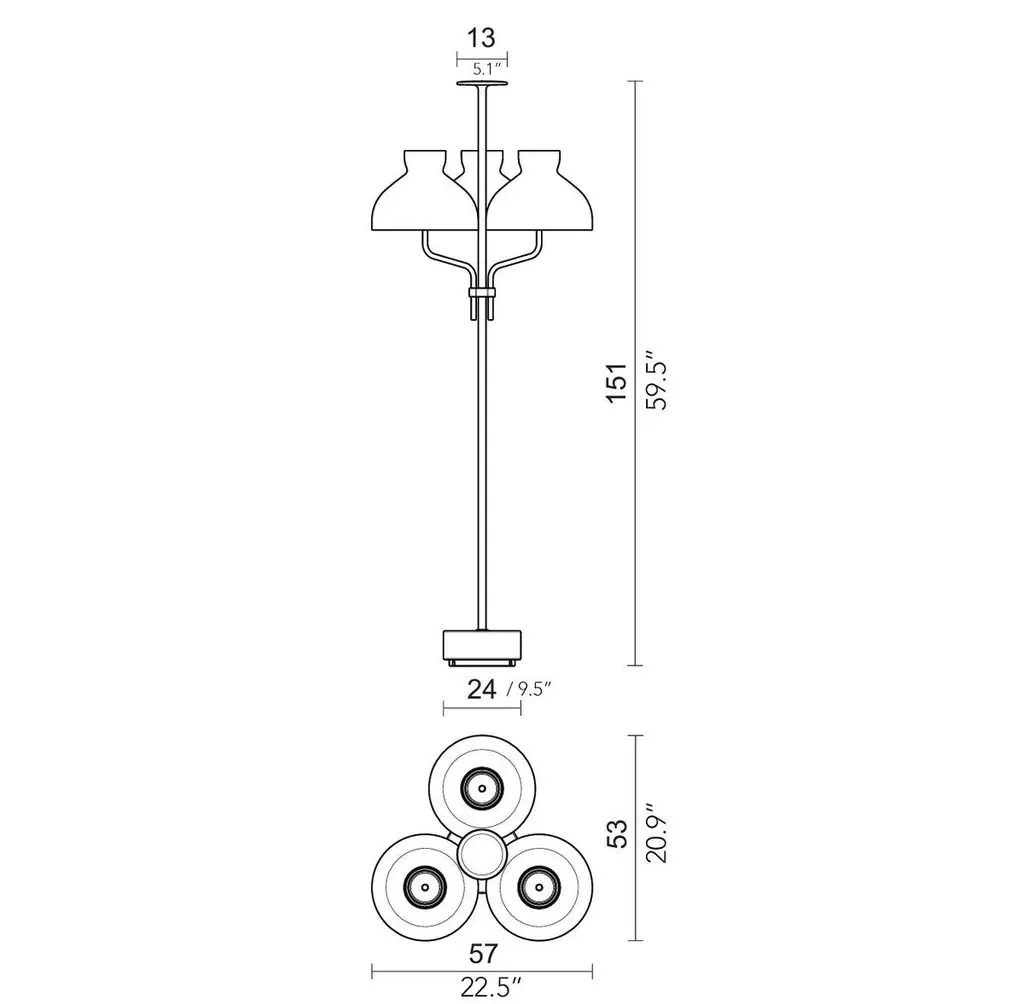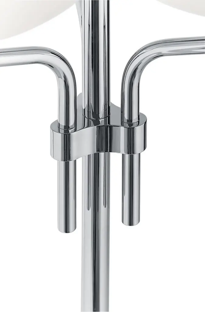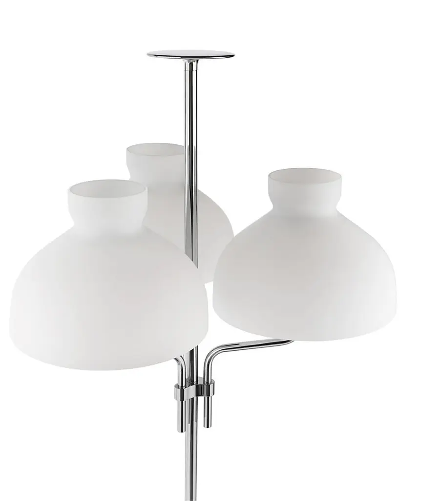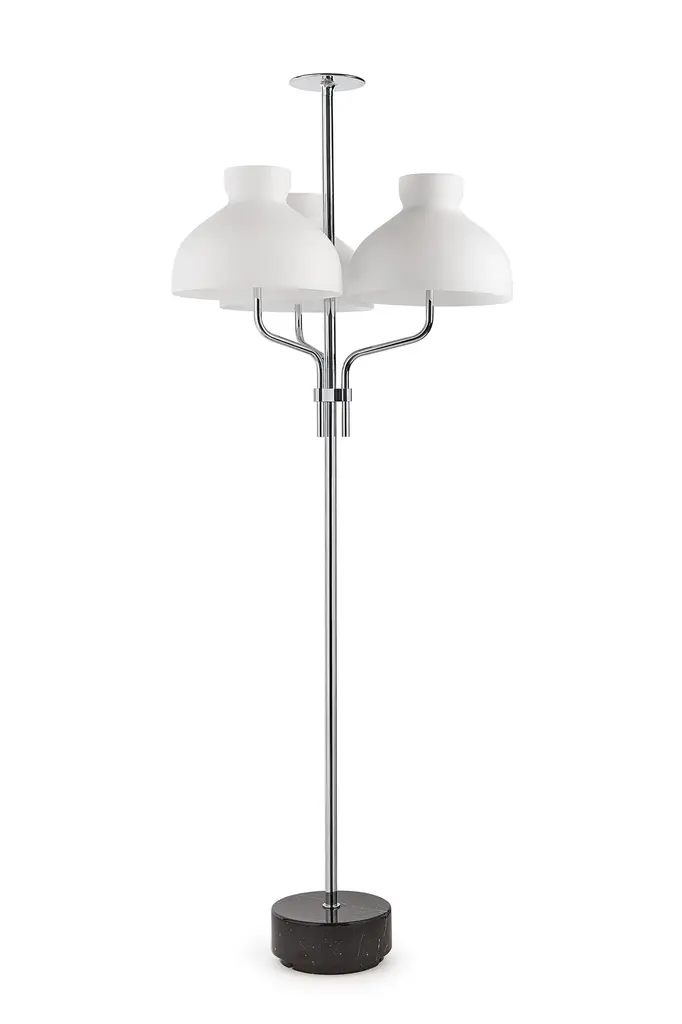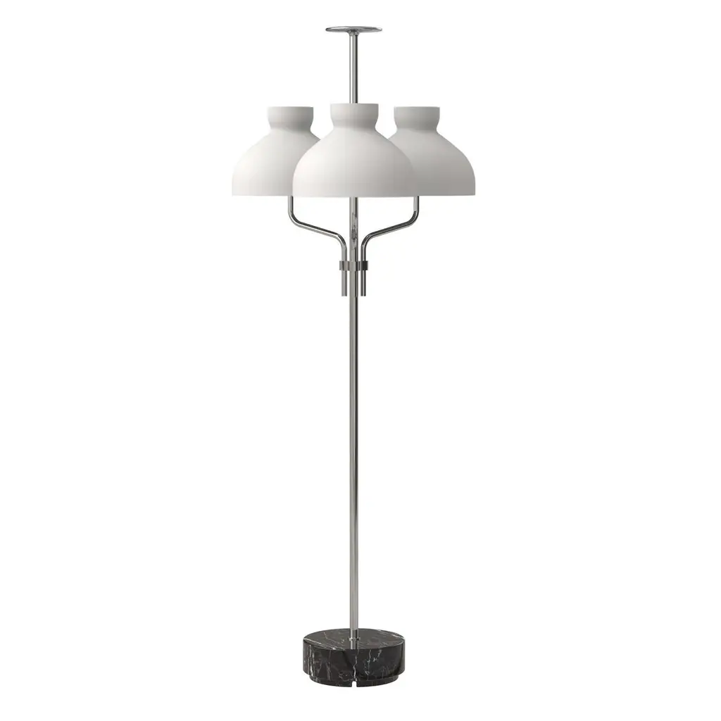 Ignazio Gardella 'Arenzano Tre Fiamme' Floor Lamp in Black Marble and Chrome.Ignazio Gardella was one of the leading figures in Italian twentieth-century architecture. A graduate of the Politecnico di Milano, he founded Azucena with Luigi Caccia Dominioni and Corrado Corradi Dell’Acqua in 1947. A renowned architect, he continued producing iconic furniture and lighting designs until the 1990s.Originally designed by Gardella in 1963 for Azucena, this authorized Tato Italia re-edition is executed in chromed metal and black Marqinia marble with three Venetian blown opaline glass diffusers.Price is per item. Available in unlimited quantities in choice of brass, chrome, satin bronze, or satin nickel stem with black Marquinia or white Carrara marble base. Prices vary; kindly inquire for more information. This listing is for the chrome variant with black marble base.In stock lead time 12-14 weeks. Out of stock lead time can add an additional 10 weeks or longer. Please note that inventory availability subject to change without notice. For time-sensitive orders, kindly inquire prior to purchasing.Each shade accommodates 3x US E12 candelabra base bulbs max 5W LED, (nine total bulbs, not included). Not UL listed, but recommended UL listing possible from an authorized 3rd party vendor for an additional cost. Contact us for more information.Made to order. All sales final.