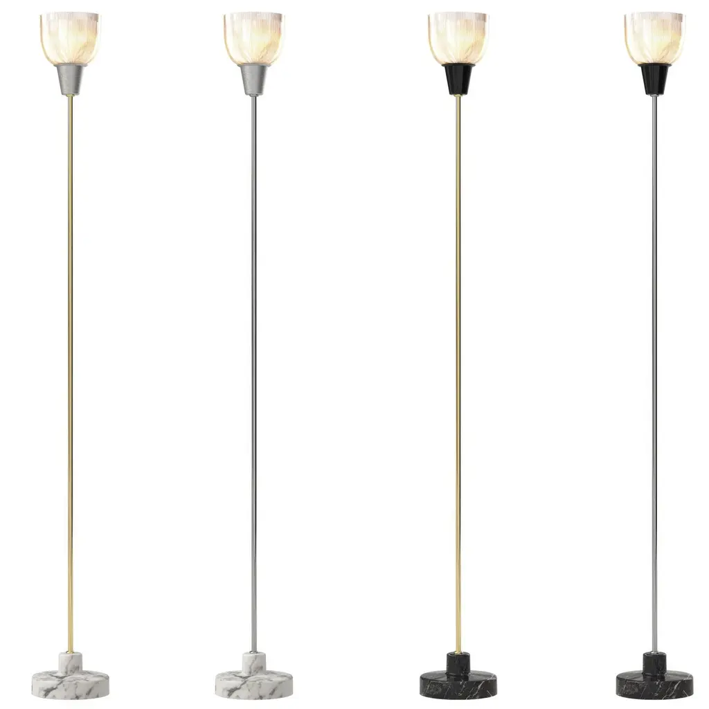 Ignazio Gardella 'Coppa Aperta Piantana' Floor Lamp in Black Marble and Brass.Ignazio Gardella was one of the leading figures in Italian twentieth-century architecture. A graduate of the Politecnico di Milano, he founded Azucena with Luigi Caccia Dominioni and Corrado Corradi Dell’Acqua in 1947. A renowned architect, he continued producing iconic furniture and lighting designs until the 1990s.Originally designed by Gardella in the 1950s for Azucena, this authorized Tato Italia re-edition is executed in Marquinia marble with a polished brass stem and a textured pressed glass diffuser.Price is per item. Available in unlimited quantities in choice of Marquinia or Carrara marble and with brass or chrome stem. This listing is for the floor lamp with black Marquinia marble base and polished brass stem.In stock lead time 12-14 weeks. Out of stock lead time can add an additional 10 weeks or longer. Please note that inventory availability subject to change without notice. For time-sensitive orders, kindly inquire prior to purchasing.Accommodates 1x standard medium base (e26) bulb max 8W LED. Not UL listed, but recommended UL listing possible from an authorized 3rd party vendor for an additional cost. Contact us for more information.Made to order. All sales final.