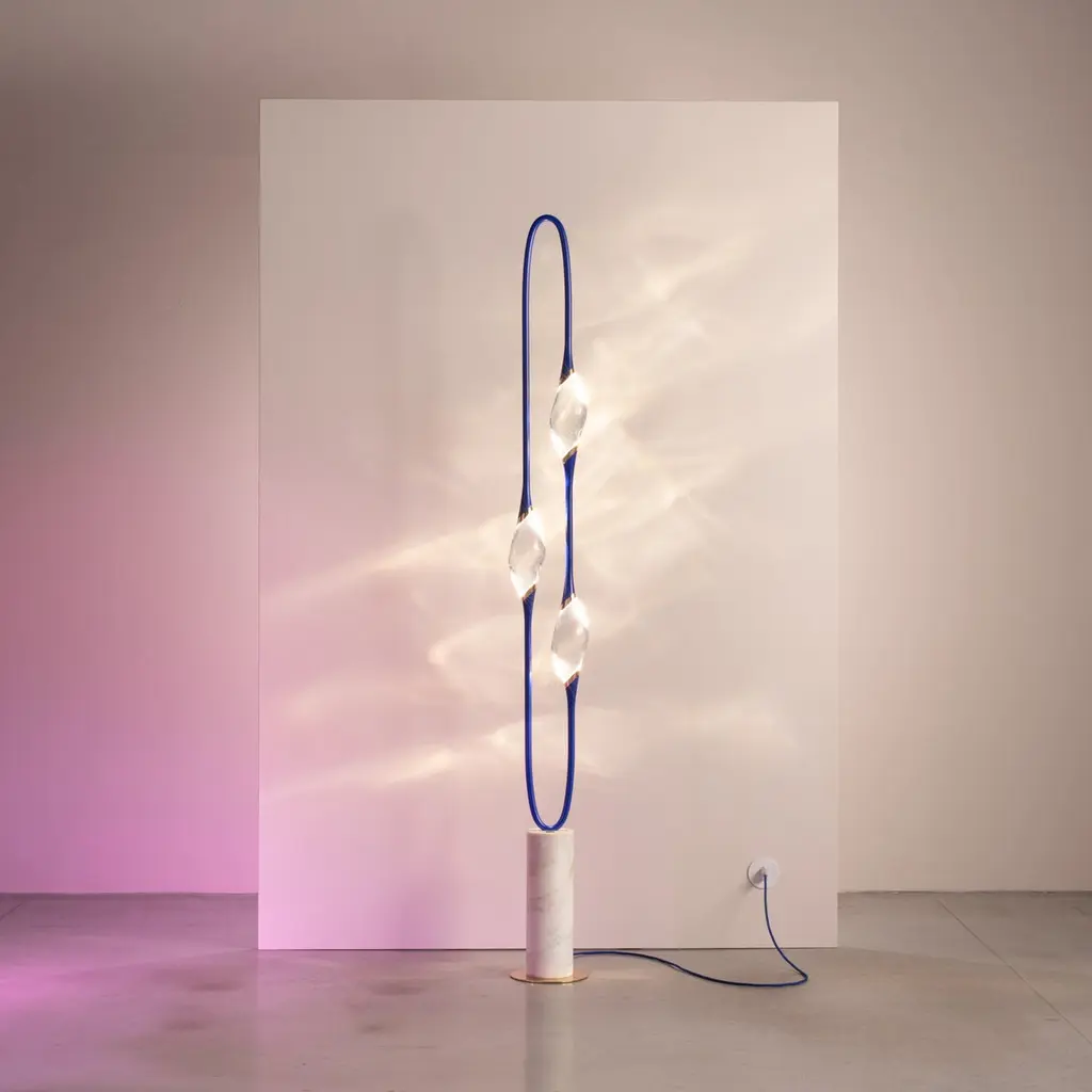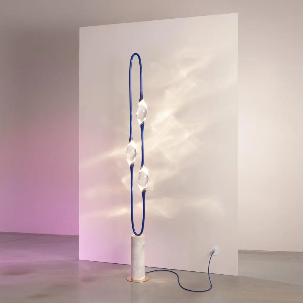 "Il Pezzo 12 Floor Lamp" - Blue Majorelle - Calacatta Marble - Crystals - Leds