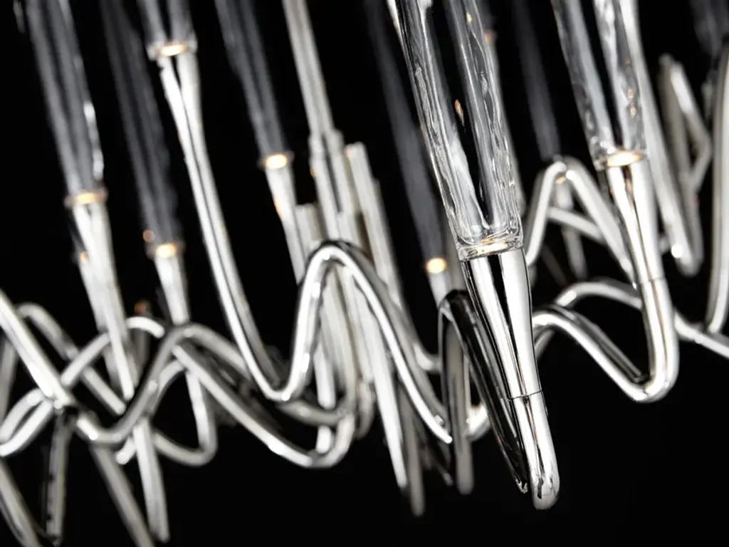 Inspired by Arabic calligraphic art and the icon of the classical candelabrum is Il Pezzo 3.This collection of lamps praises a hand-forged brass structure and elegant “candles” crafted from hand blown crystal, according to the noble Tuscan artisan tradition.They are illuminated using the latest LED technology, creating a sophisticated and romantic light. Experiencing the exquisite craftsmanship of these pieces, combined with highly advanced technology, is truly fascinating.Notably, the lamp features a distinctive element, its “Missing Piece”(“Pezzo Mancante” in Italian): a small brass cylinder containing the serial number, guaranteeing its authenticity and individuality.Custom finishes are also available to suit every preference.All our masterpieces are meticulously crafted in our Atelier located in Florence, Italy, from a small team of people driven by a shared passion for quality and beauty. We constantly strive to create unparalleled works of art, where each piece is a testament to our commitment to craftsmanship and innovation.