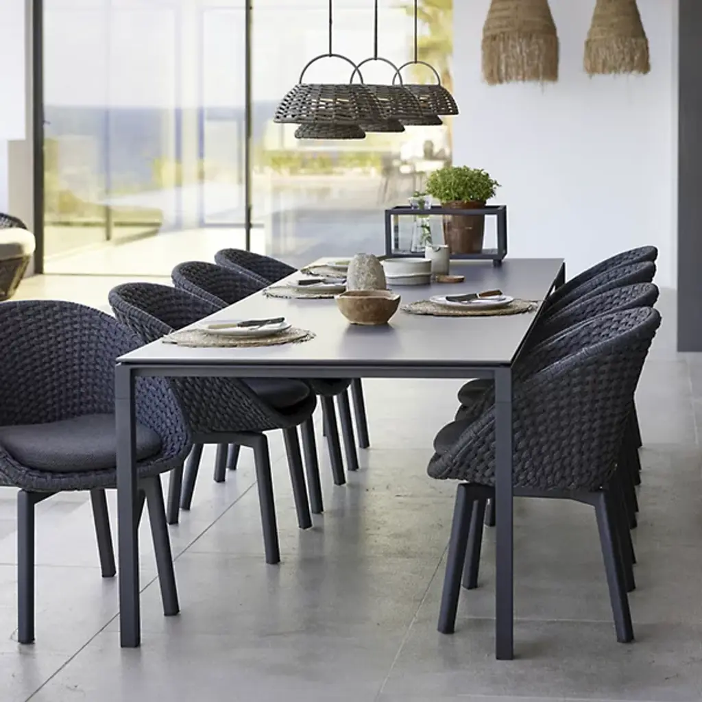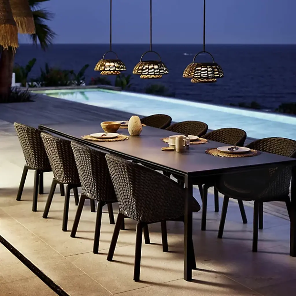 Enhance outdoor gatherings with the Illusion Outdoor LED Floor Lamp With Stand from Cane-line, casting a cozy and welcoming illumination. Meticulously crafted by Cane-line Design, this lamp integrates practicality with style, boasting robust construction using premium materials to offer elegant refinement. Its convenient handle makes it mobile around outdoor areas, while the adaptable LED light source offers versatility, compatible with other lamps in the Illusion series. Reinforced with a weave fashioned from weather-resistant Cane-line Soft Rope, it not only lends a soft aesthetic touch but also ensures durability against the elements. Its moveable LED solar unit can be adjusted via remote, and its sleek powder-coated aluminum stand makes this lamp a practical complement to its surroundings.