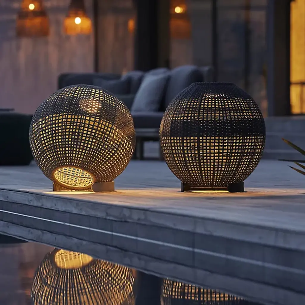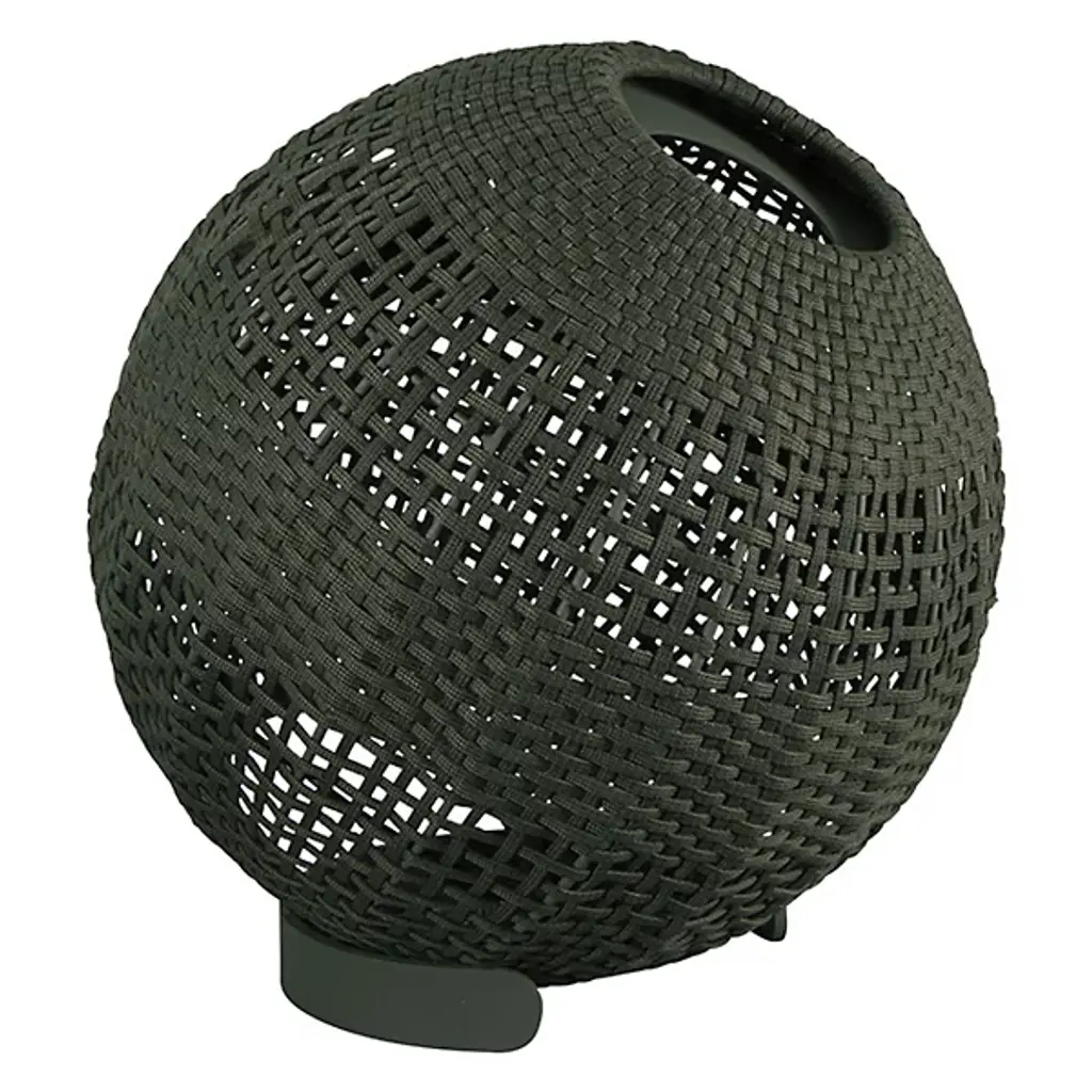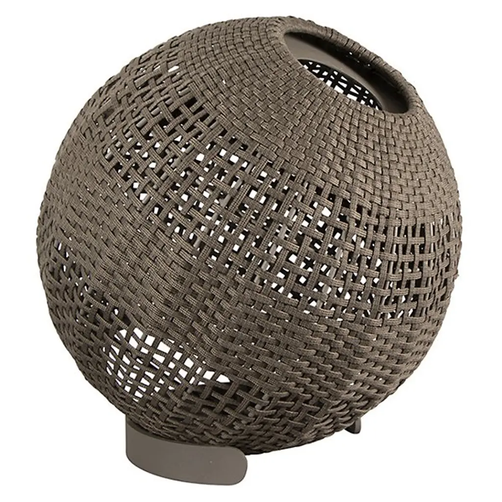 Enhance outdoor gatherings with the enduring appeal of the spherical Illusion Round Outdoor LED Floor Lamp from Cane-line, which provides a warm and inviting glow. Skillfully crafted by Cane-line Design, this lamp seamlessly blends functionality with sophistication. It features a sturdy metal construction that is accented by a top-quality Cane-line weave for an elegant touch. Its lamping pivots within a subdued metal base, designed with a weather-resistant weave made from Cane-line Soft Rope that contrasts well with the sleek powder-coated aluminum stand.