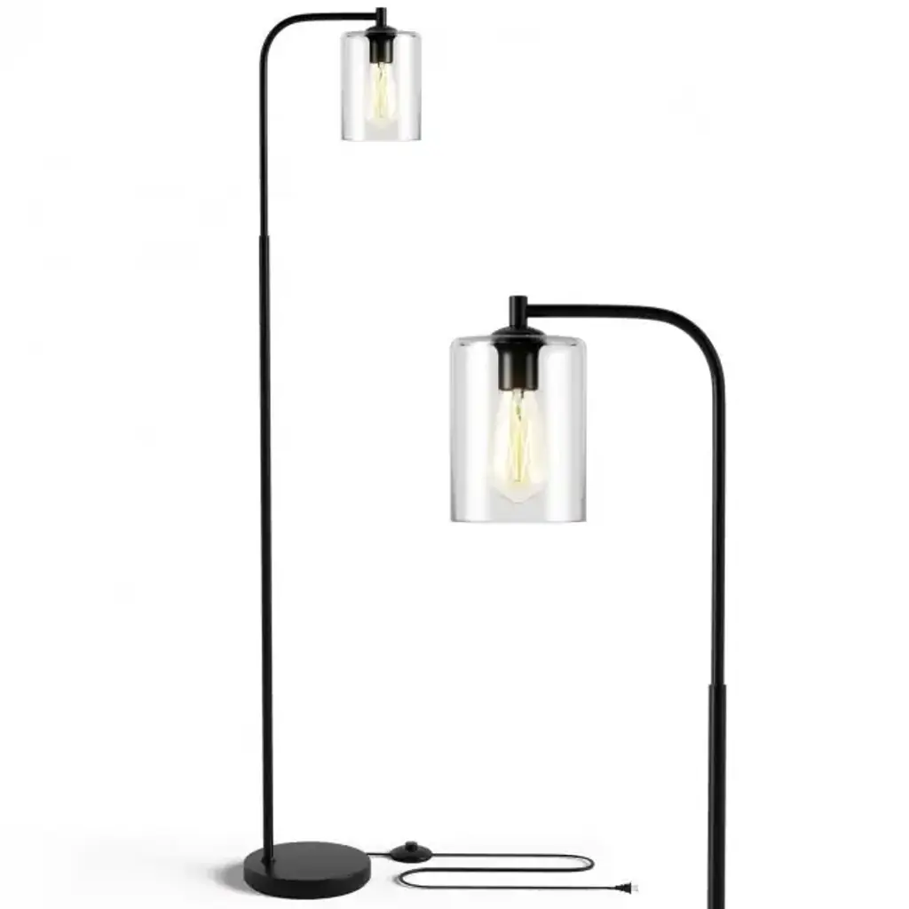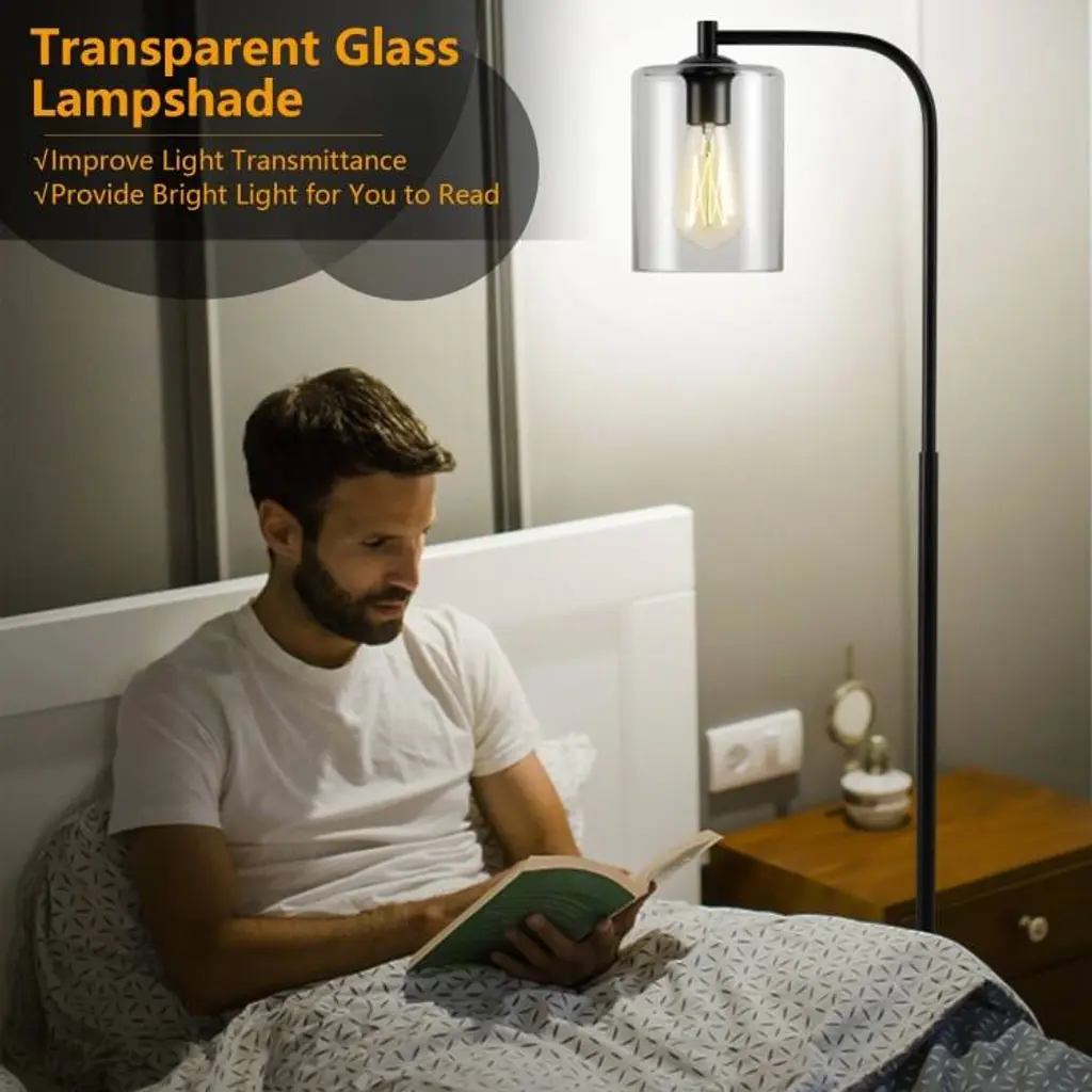 Industrial Floor Lamp With Modern Glass Shade For Home Decor - 10" X 10" X 66" - Black
