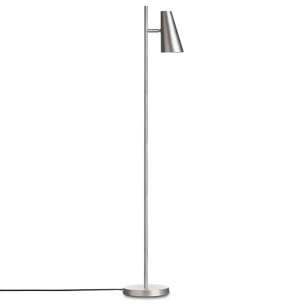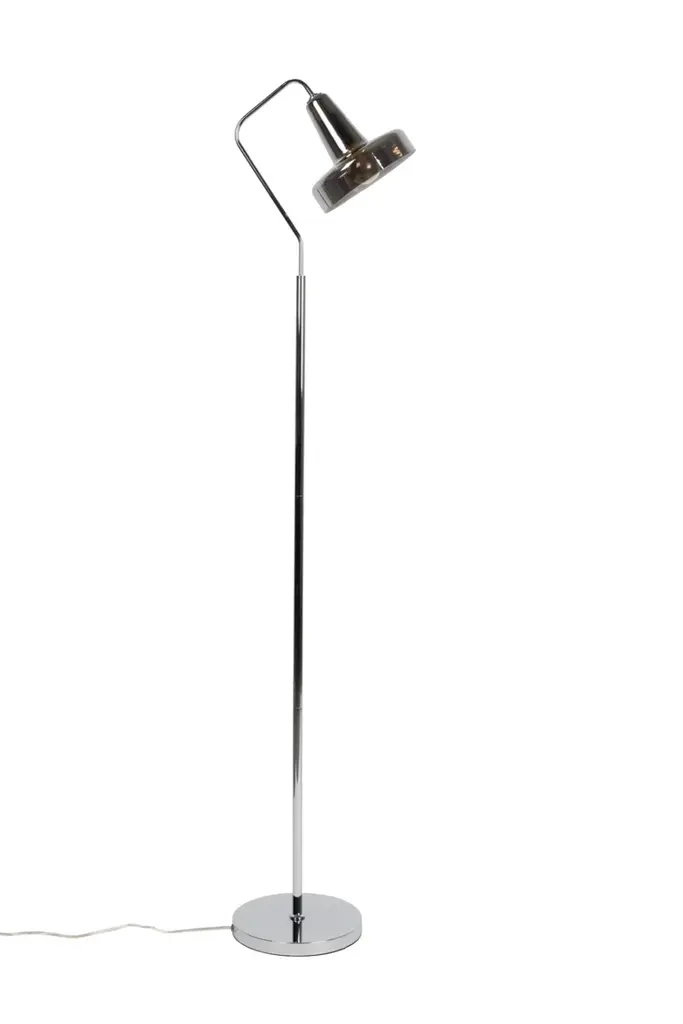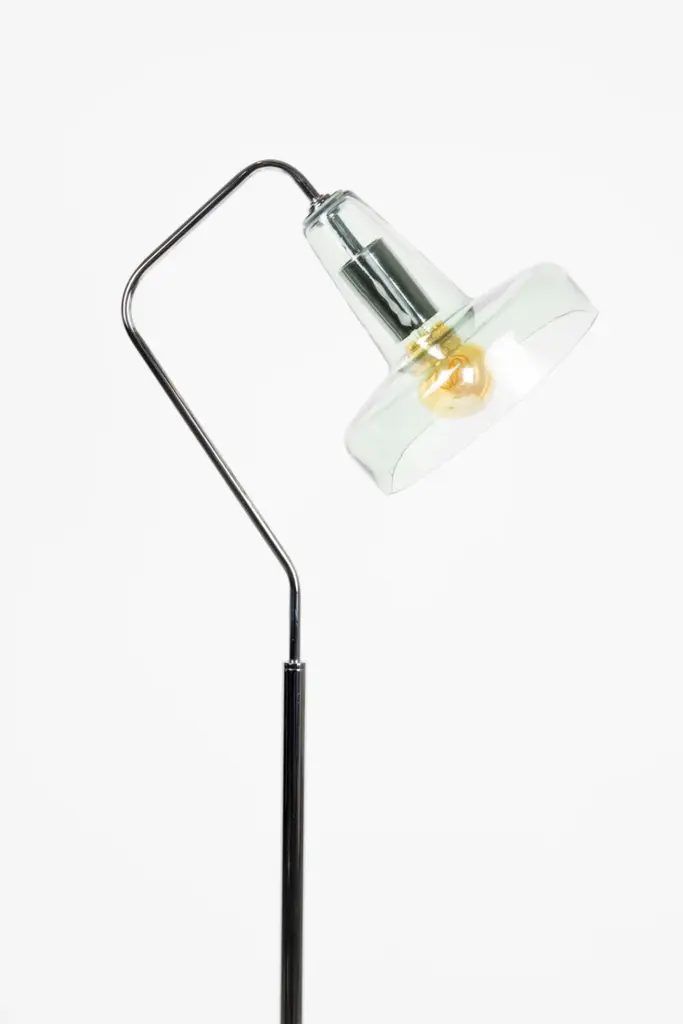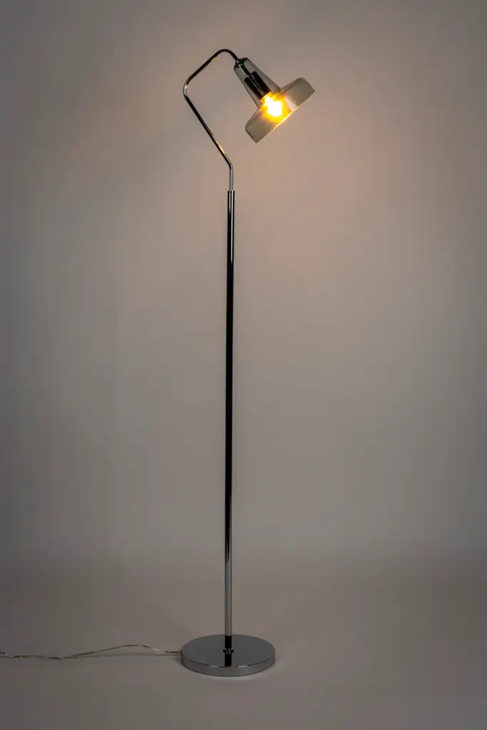 Exuding sleek and subtle sophistication, the Anshin floor lamp by DF features a wide spot lighting in a translucent glass shade. With silver finished body and circular base, this lamp is a nod to the contemporary and industrial concepts of design.