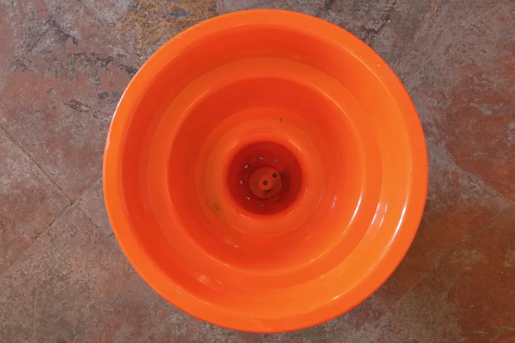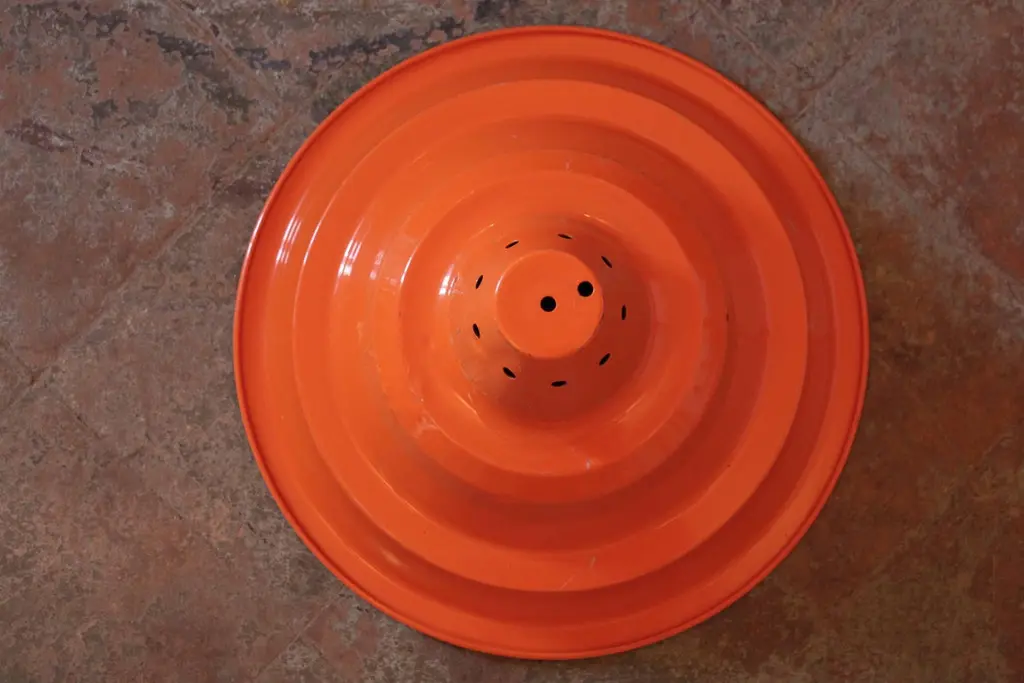 Industrial Orange Lamp, Italy 1970s.Big industrial orange lampshade from the 1970s. Vintage design. In very good conditions with only few signs of time. 3 available.