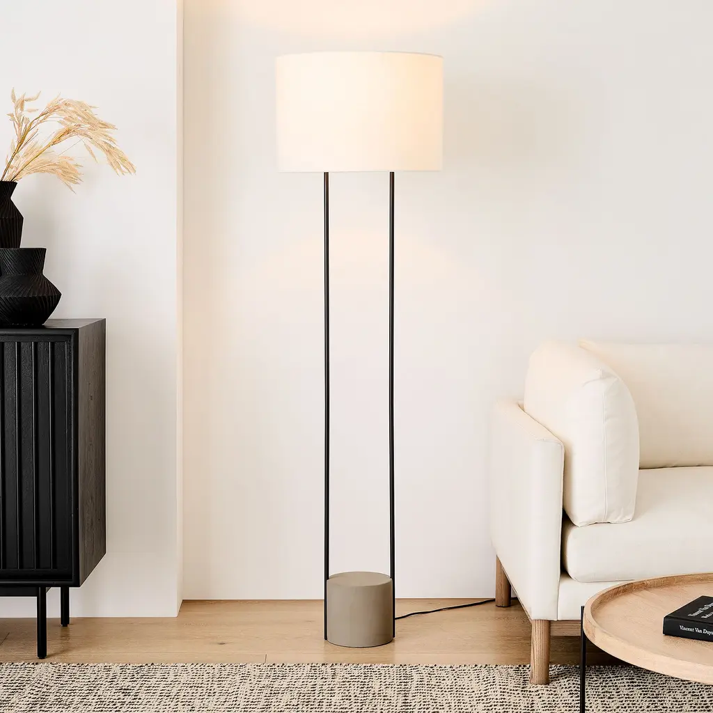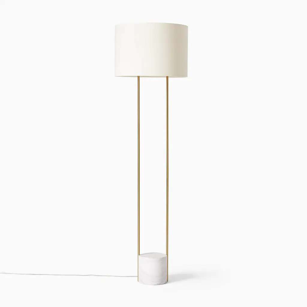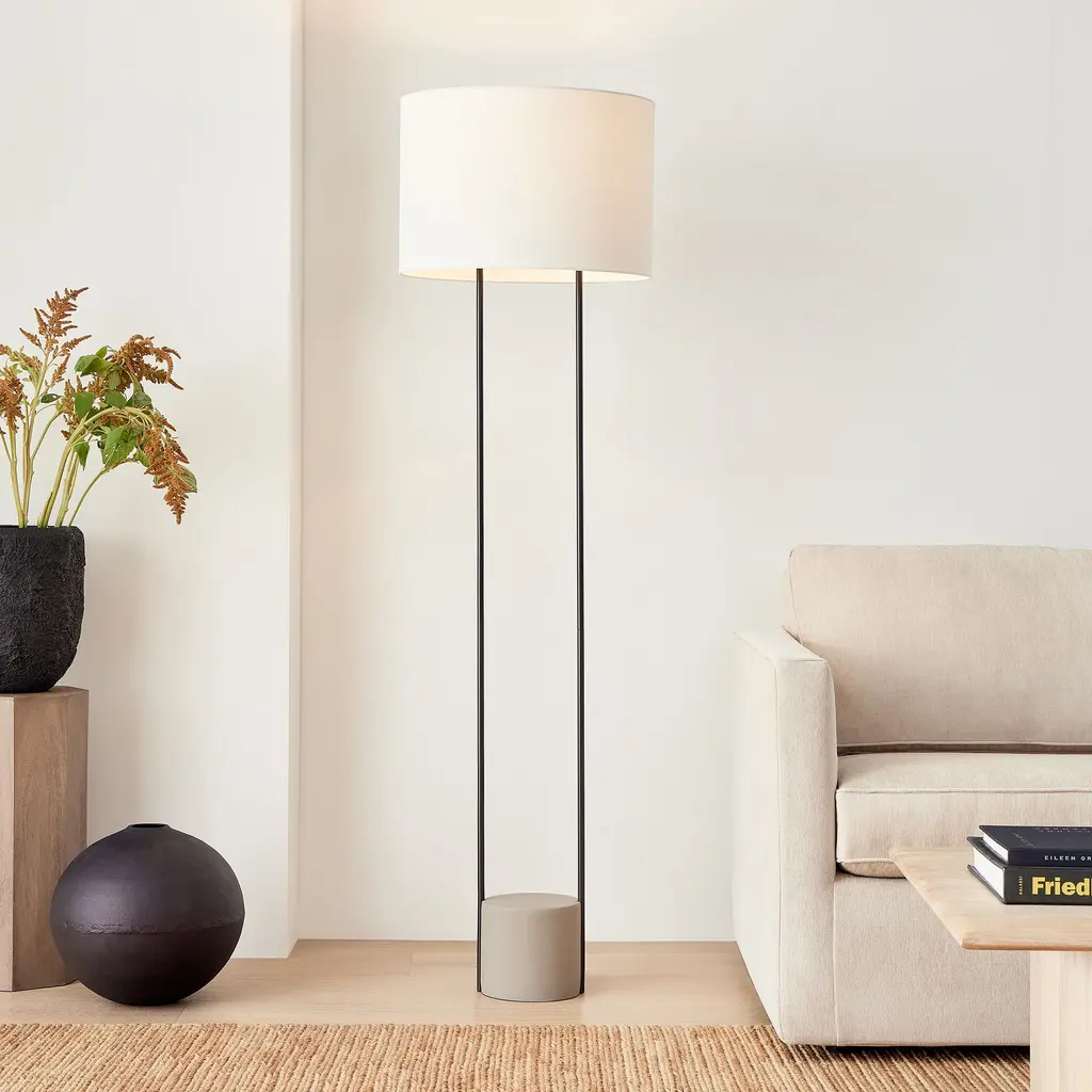 The clean, streamlined silhouette. Its striking mix of materials. A crisp linen shade diffuses light. Contract Grade, so you know it's built to last.