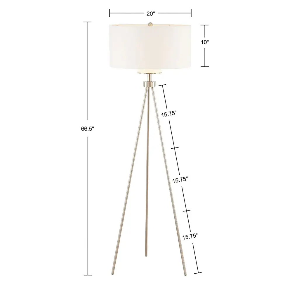 This tripod floor lamp by INK+IVY is the perfect update of urban sophistication to any room. A metal base is featured in a gold or silver finish, completed with a light grey/ cream linen fabric shade for a simple update. Features:Dimensions: