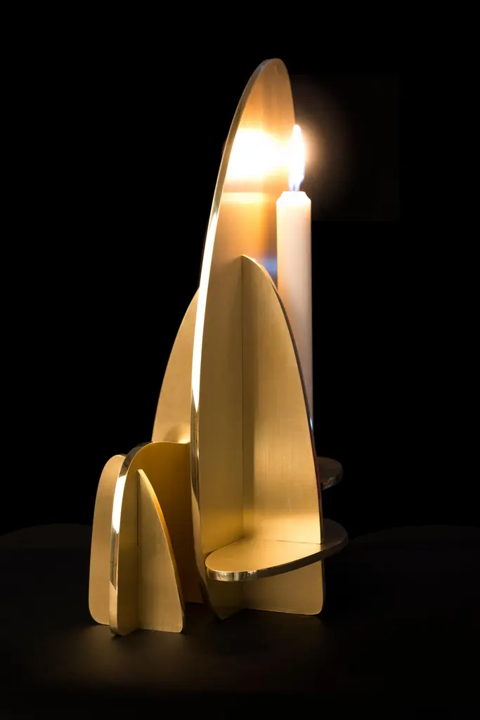 Interlocking Panels is an elegant and inventive furniture collection.The pieces are designed with interconnected elements modelled on pebbles and includes candle holders, consoles, and floor lamps. This project follows the artist’s desire to build and construct shapes and forms that push the boundaries of the expected object forward. The pieces are precious and have the power to illuminate with dazzle every interior. Finishes: polished and brushed brass.