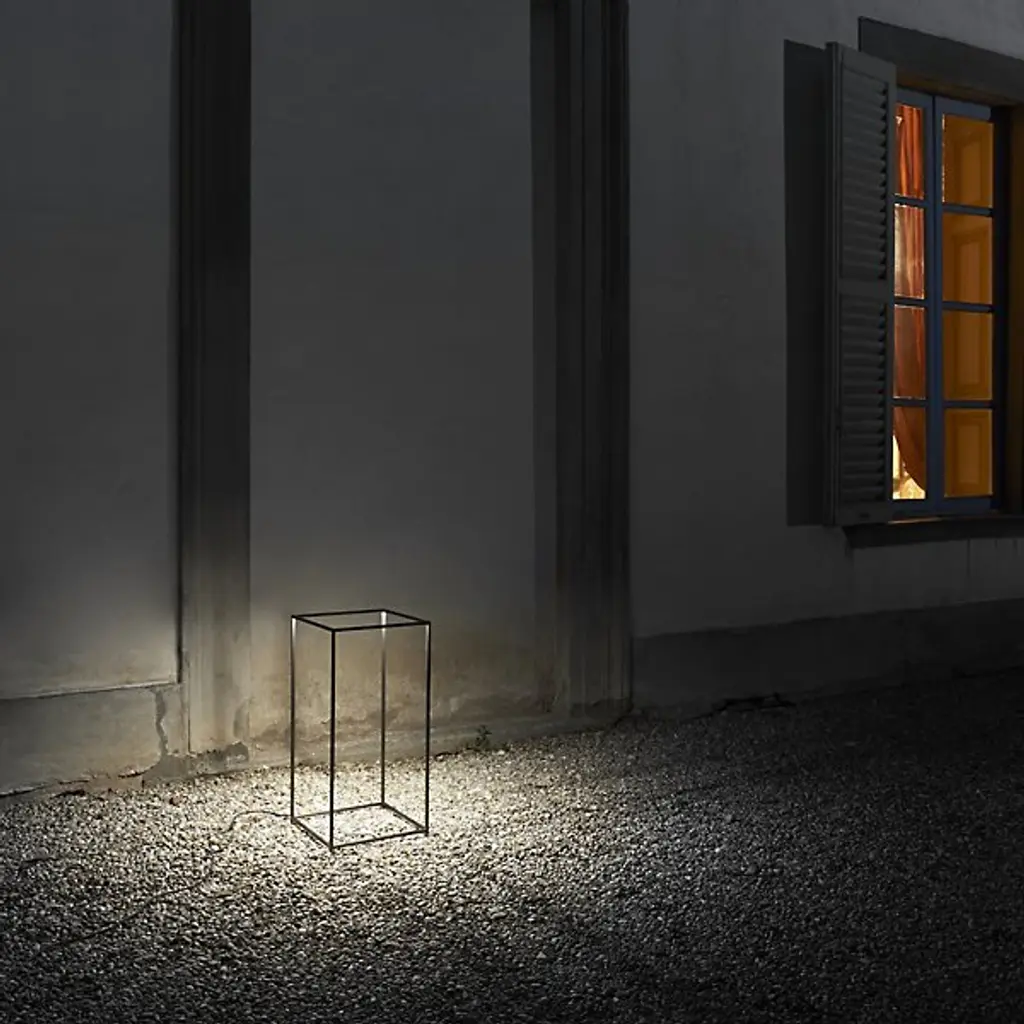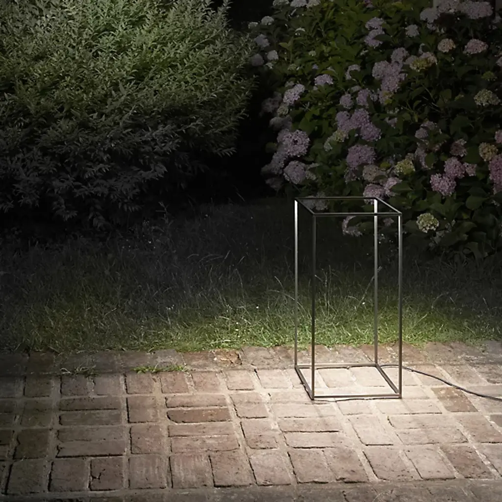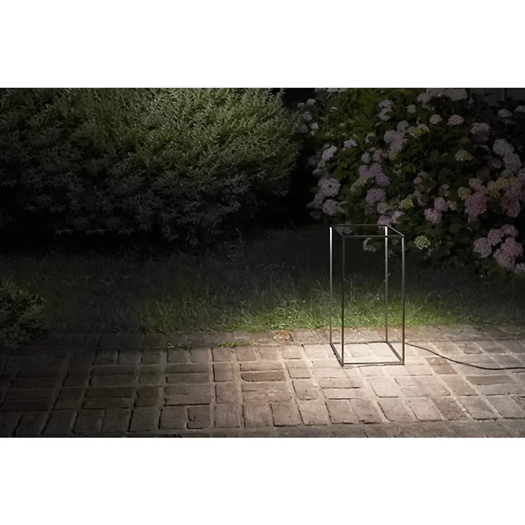 Think outside the box with the Flos Ipnos LED Outdoor Floor/Table Lamp. The nimbus of light surrounding the rectangular structure is mysterious and seems to manifest out of thin air, when in fact the LED light source is hidden under the top portion of the frame. Extremely light and portable, place this durable hollow cube around an outdoor space for an ethereal look.