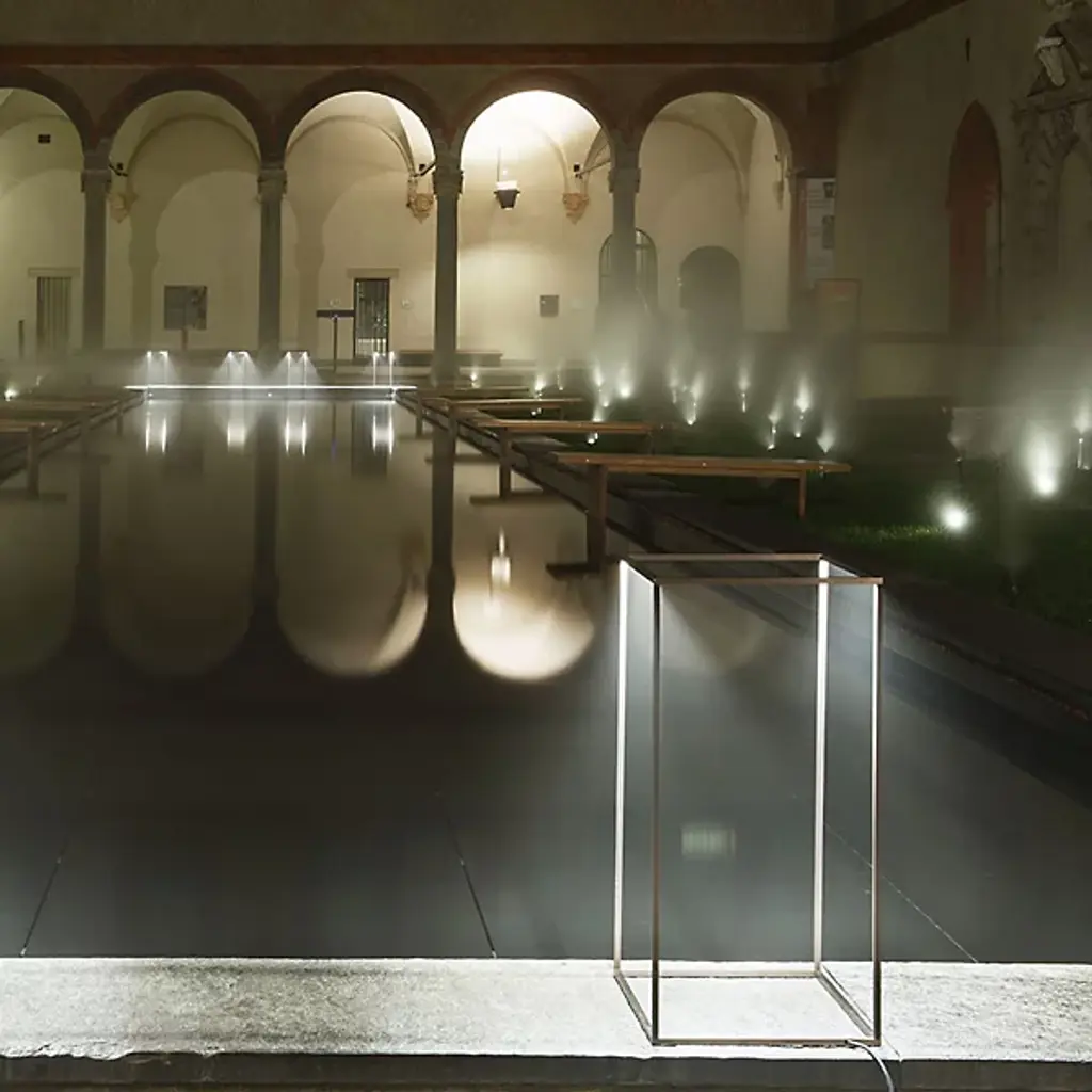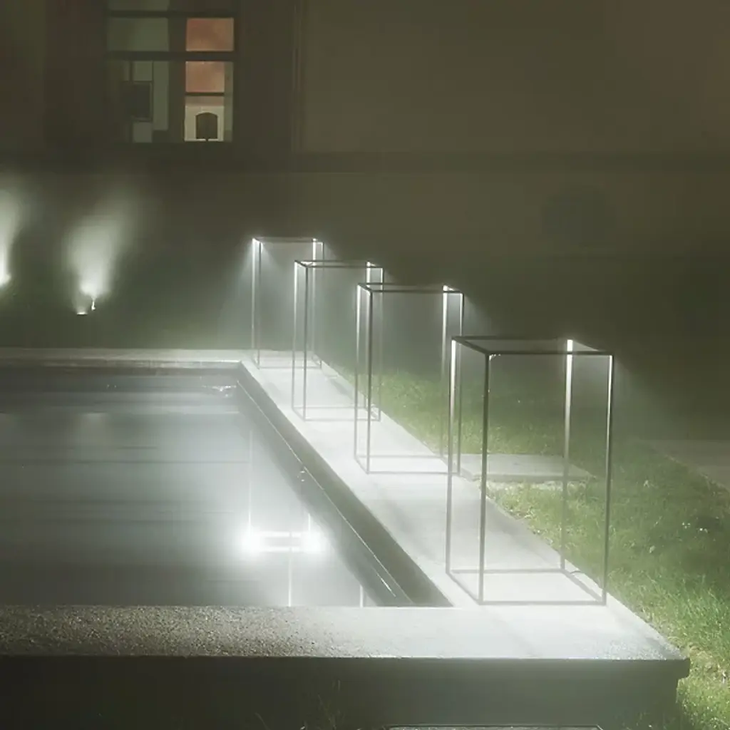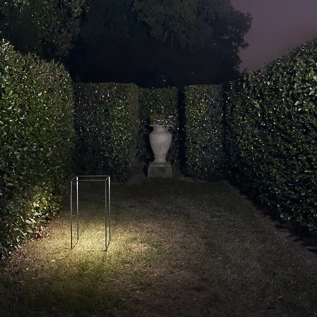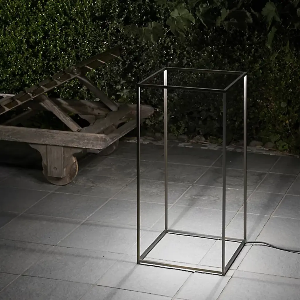 Think outside the box with the Flos Ipnos LED Outdoor Floor/Table Lamp. The nimbus of light surrounding the rectangular structure is mysterious and seems to manifest out of thin air, when in fact the LED light source is hidden under the top portion of the frame. Extremely light and portable, place this durable hollow cube around an outdoor space for an ethereal look.