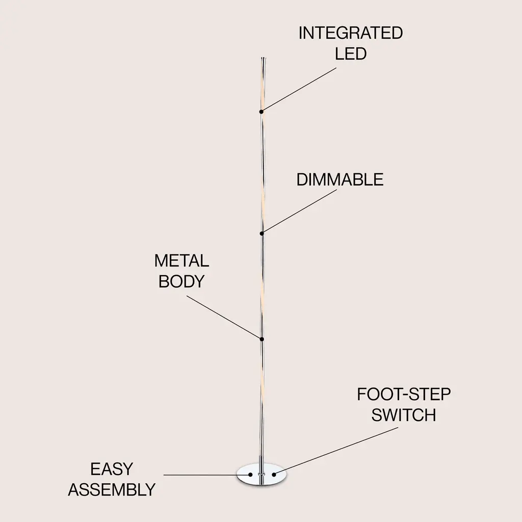 When a room calls for understated modernism, this floor lamp answers with the perfect balance of minimalism and statement-making design. The energy-efficient built-in LEDs cast a warm glow from the slim line bar base. Finished with a classic silk-wrapped cord, as beautiful displayed as hidden. Features:Dimensions:About us:You see a lamp.We see a decorative work of art.A perfectly curved shade casts a dramatic shadow on a floor. A silk cord you never want to hide. LED lightbulbs: as easy on the environment as they are on the eyes. The JONATHAN Y Lighting collection considers every detail from impeccably sourced materials to designer styling. And our prices are so attractive, we've transformed a functional necessity into a fashion accessory.JONATHAN Y Lighting … a fashion revolution in home décor.