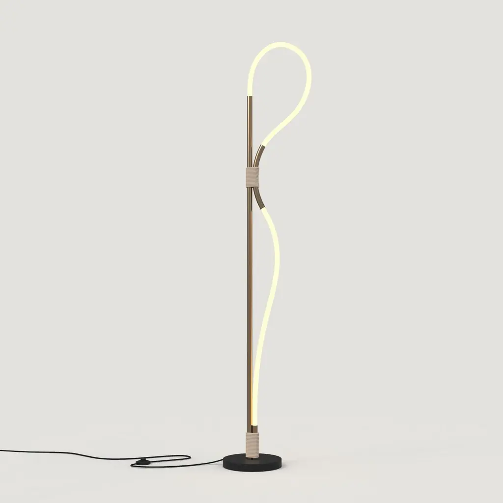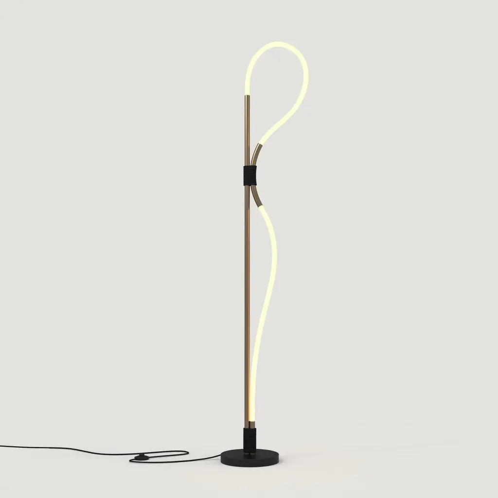 The ISIBO collection by Arkivio South Africa weaves the threads of African craft and function to create a unique set of Art Lights inspired by African traditions.The sculptural frames take elements of African craft and design into a scale fit for a modern living space each with its own unique silhouette. Each body is hand wrapped with leather intertwined in a dance around the light. Custom Options: Leather wrapping - Black / Natural. Brass - Light or Dark AgedMaterials - Solid brass circular tube profile.LED - 3K warm LED.Power - 20W / Input Voltage 110 / 220V.Loop - 22mm / 1 inch diameter diffused silicone tube.Cord - 3m black fabric cord.Dimming - Motion sensor on/off with dimming 10-100%.Every Arkivio piece is designed and made to order from our atelier in Durban, South Africa.