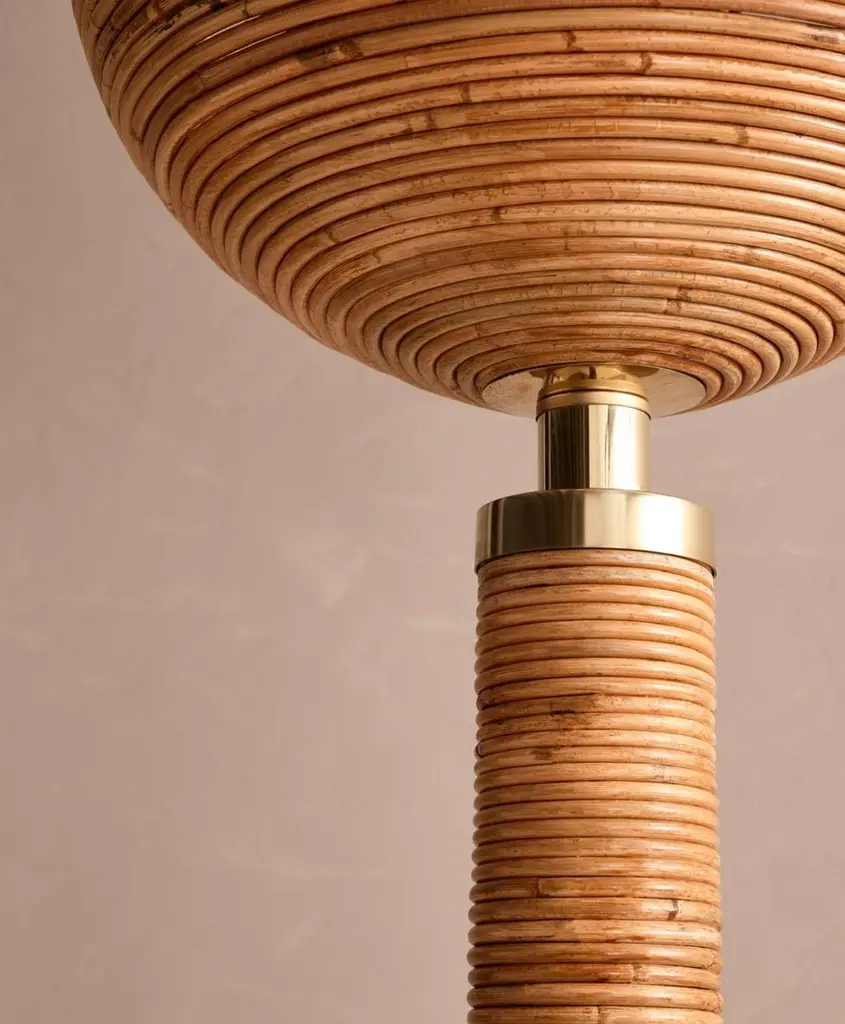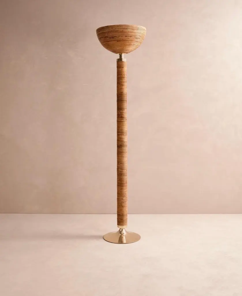 Beautiful and Chic bamboo and brass floor lamp. Perfect for summer homes, or any mid century styles. Excellent craftsmanship. Made in Italy. In the manner of Gabriella Crespi.Base diameter: 16 inches Hat diameter: 18 inches Height: 84 inches Same era as: Charlotte Perriand, Jean Prouve, Pierre Pauline, Serge Mouille, Jacques Adnet, Jean Royere, Roger Tallon, Michel Buffet, Pierre Guariche, Le Corbusier, Gio Ponti, Franco Albini, Carlo Mollino, Guglielmo Ulrich, Jo Colombo, Ettore Sottsass, Marco Zanuso, Osvaldo Borsani, Ico Parisi, Charles and Ray Eames, George Nelson, Eero Saarinen, Florence Knoll, Isamu Noguchi, Harry Bertoia, Paul Mccobb, Edward Wormley, Vladimir Kagan, Milo BaughmanOther lighting companies: Maison Lunel, Stilnovo, Fontana Arte, Kalmar, Louis Poulsen, Arredoluce, Vistosi, Barovier and Toso, Arteluce, Artemide, Robert Mathieu, Vistosi, Max Ingrand,