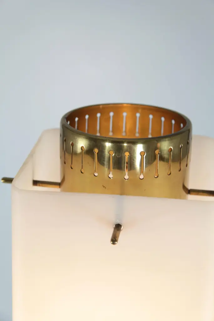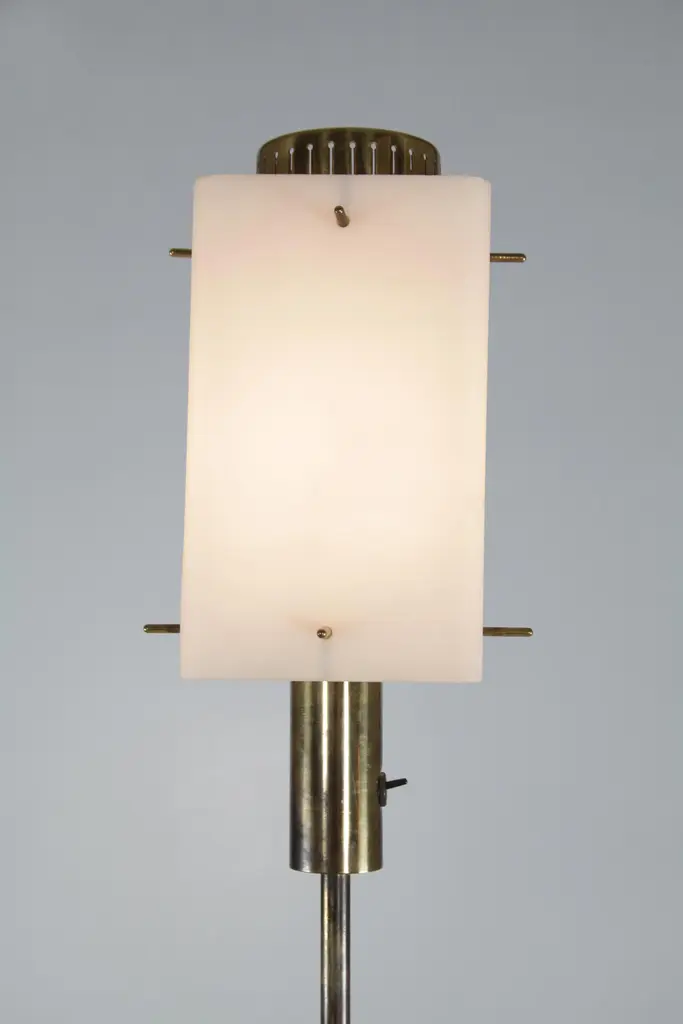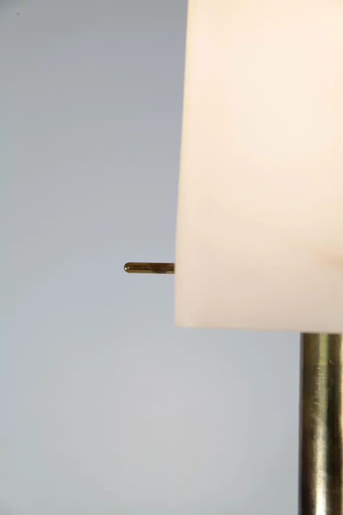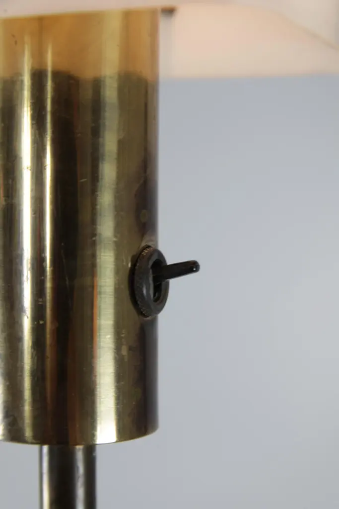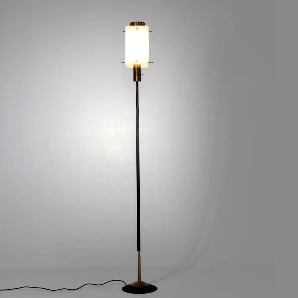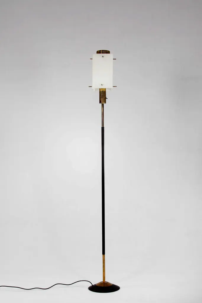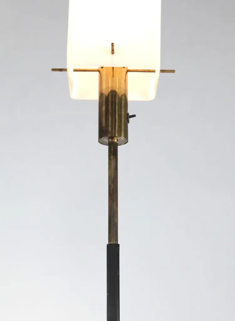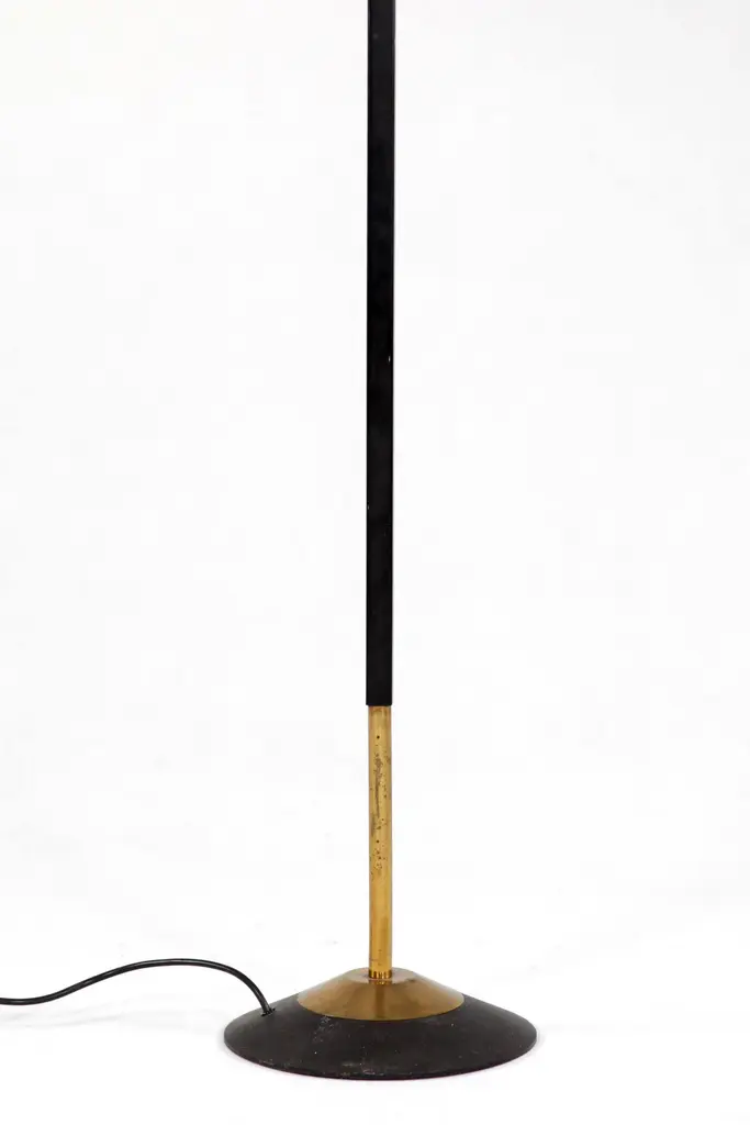 Floor lamp from Italy, 1950s. The lamp has an opaline glass shade, painted Corpus and brass elements. This piece has an attribution mark, I am sure that it is completely authentic and take full responsibility for any authenticity issues arising from misattribution, European Plug (up to 250V).The wiring of this item may be original and might need replacement, if not specified otherwise.