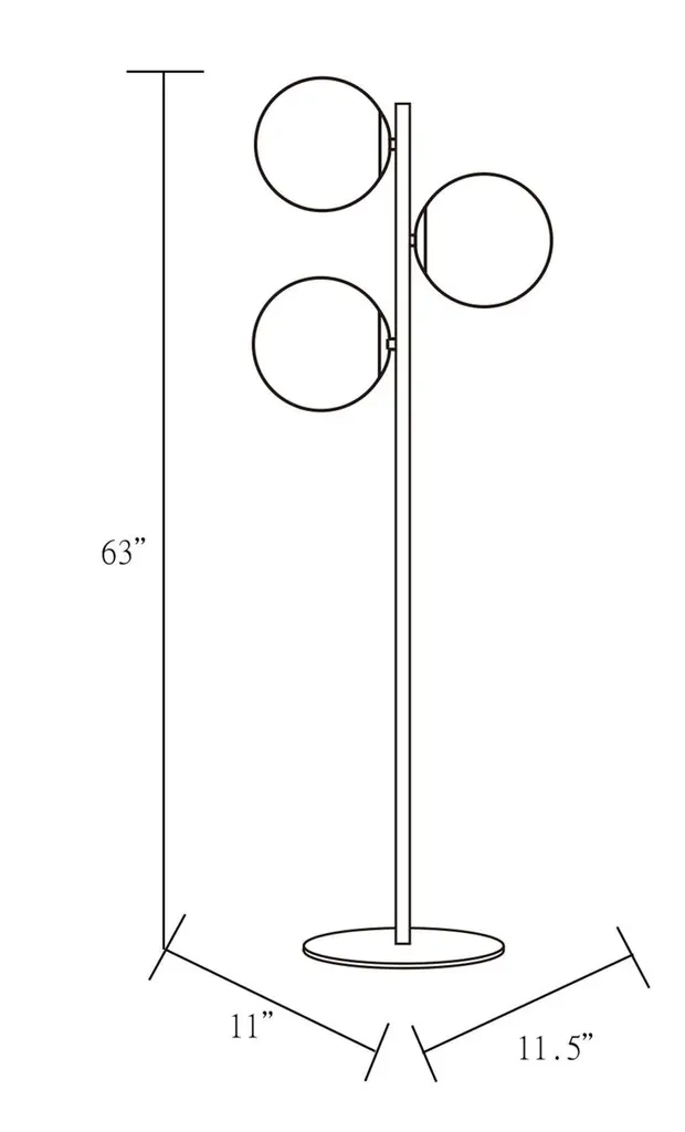 A tribute to Mid-Century Modern panache, this floor lamp pairs a sleek golden body with three white frosted globe-shape glass shades.