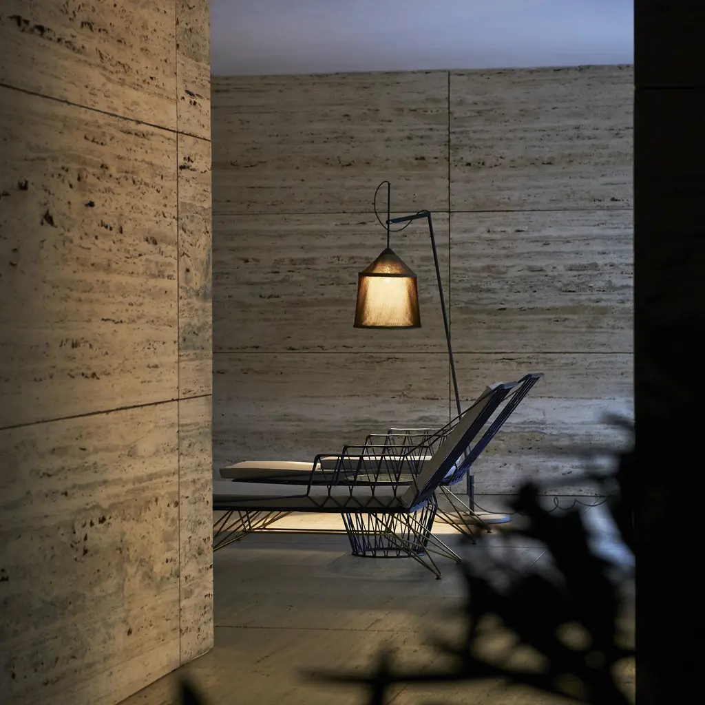 Illuminate your space with the Jaima LED Floor Lamp from Marset. The unique textilene shade adds rustic charm while the adjustable stainless steel frame provides endless versatility. With 180-degree rotation and adjustable height, this lamp effortlessly adapts to any room. Highlights