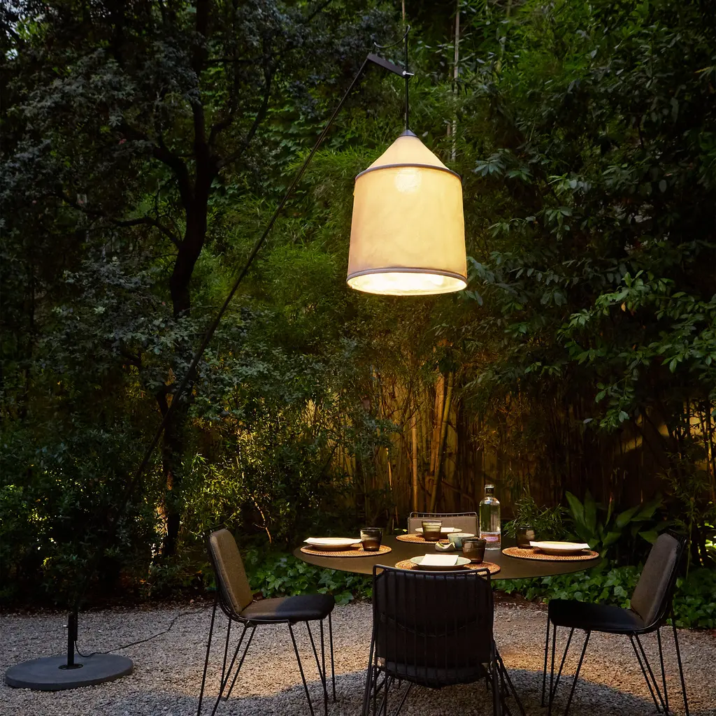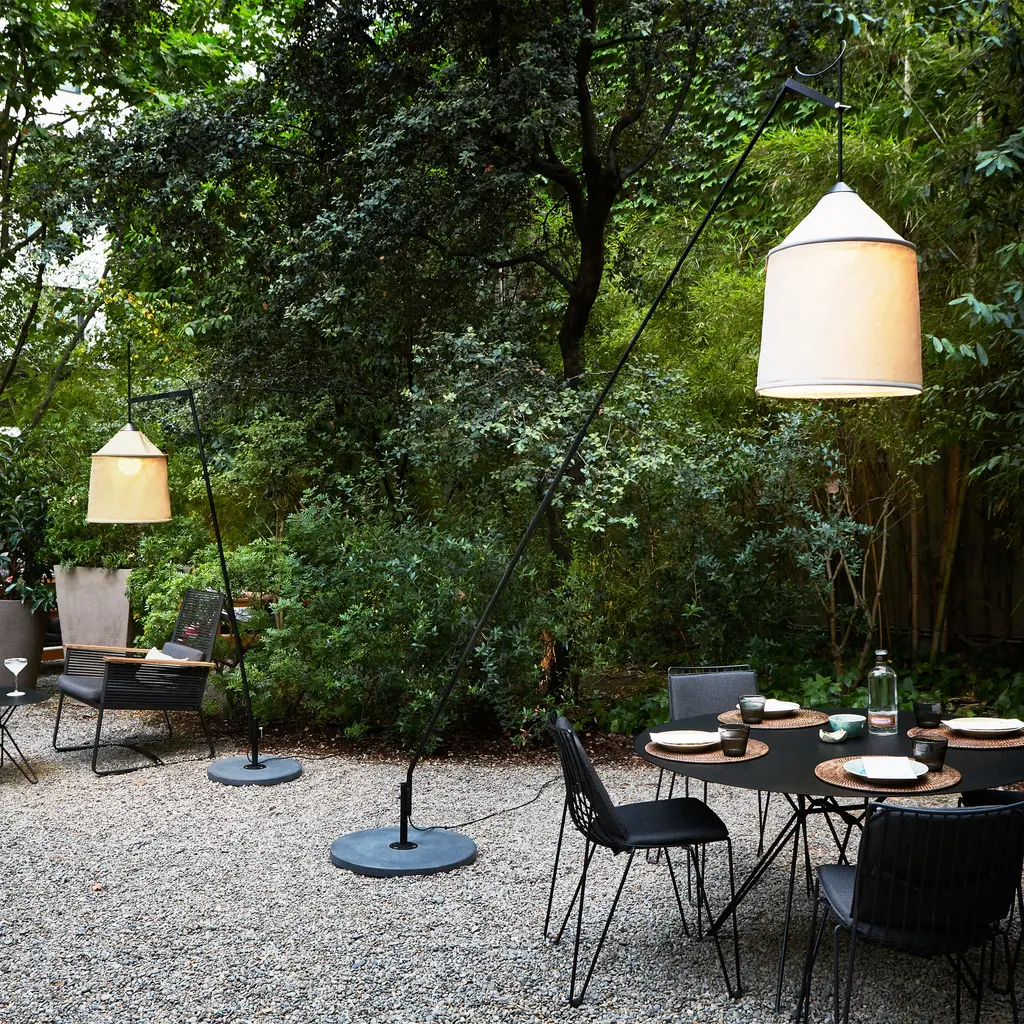 Highlight the beauty of your outdoor space with the Jaima Outdoor LED Floor Lamp from Marset. This creatively built, versatile lamp features a 180-degree rotatable stainless steel frame and adjustable height, perfect for any section of your setup. Inspired by North Africa's Bedouin tents, the textilene shade adds a touch of modern style with an antiquated charm. Highlights