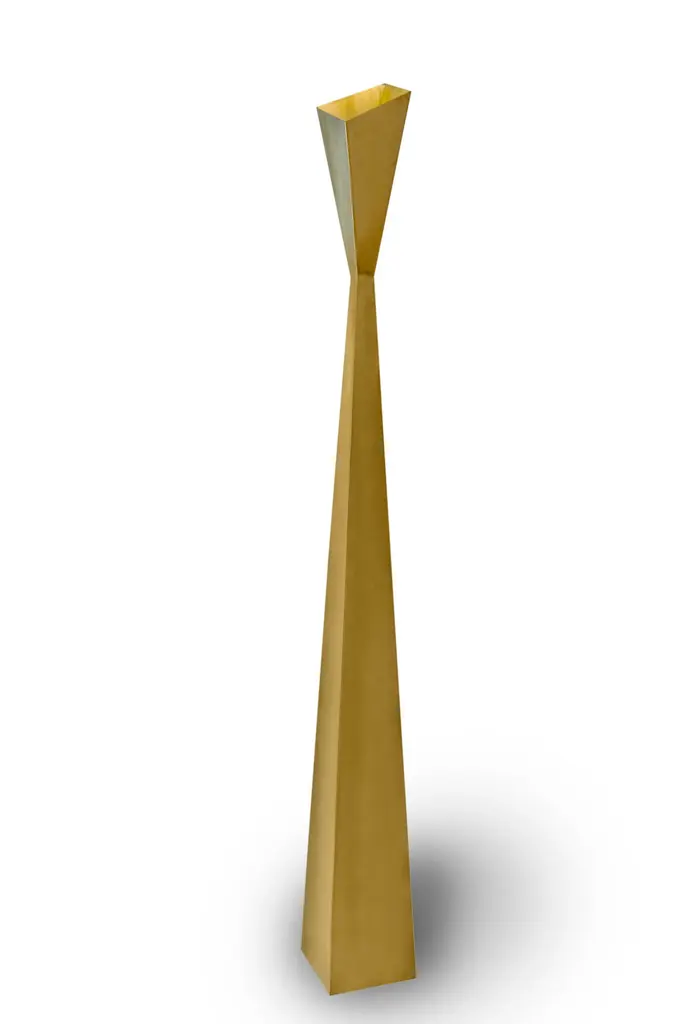 James de Wulf's lighting series offers illuminated sculptures to define spaces. The brass floor lamp stands at 78" tall, is constructed of solid brass sheeting, and holds one standard 60W light bulb.