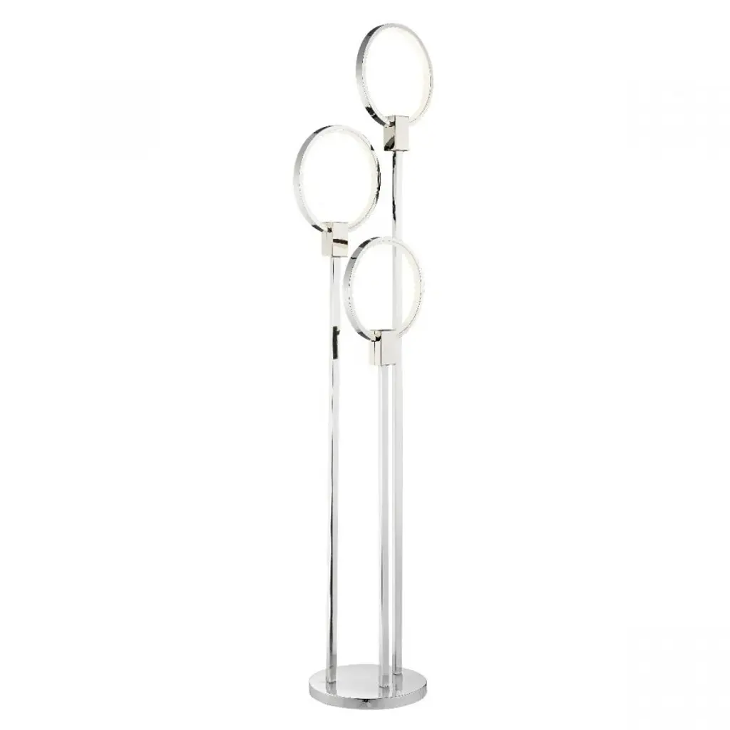 The Finesse Decor's Hong Kong LED Floor Lamp is a beautiful chrome lamp with three LED integrated hoops of different heights. This has a modern yet sophisticated style that will light your space nicely, and showcase your contemporary design aesthetic.Finesse Decor features a modern floor lamp that solves your living room, dining area, or home office area, lighting needs efficiently. With its modern design, this home improvement LED lamp becomes an essential home accessory that produce blazing bright lighting. The design of the 3 rings light is the perfect futuristic housing to match the advanced technology of LED. Consider this cool floor lamp as a must-have with its impressive and appreciative design for a gorgeous modern art or minimalist style, made from quality materials to ensure maximum durability.This is a well-packaged floor lamp made with a durable and dimmable LED strip that is built to last 30,000 hours of use. This is the equivalent of having it on 24 hours a day, 7 days a week for over 3 years. In most households, this chandelier will last for over 7 years. Once the LED dies, it can also be replaced by an electrician. We offer a warranty against defects in materials and workmanship. Should you be dissatisfied with the product, we ensure a product replacement or a complete money-back guarantee.