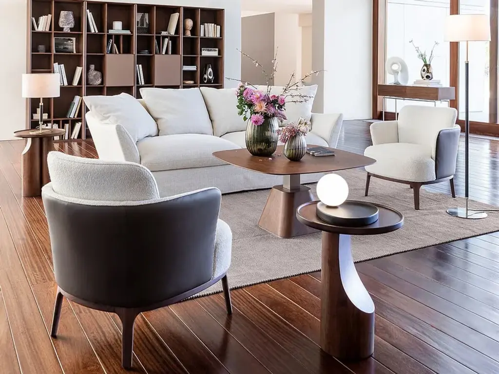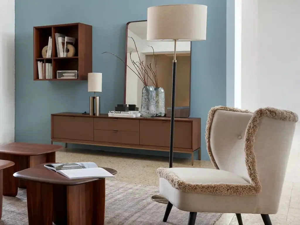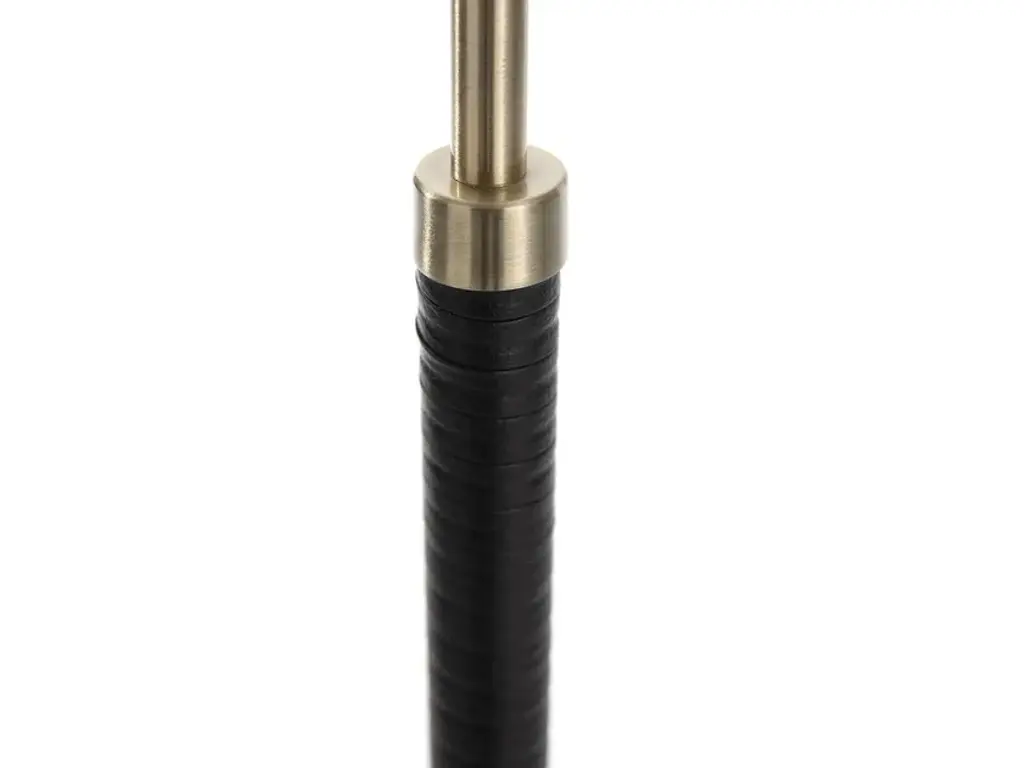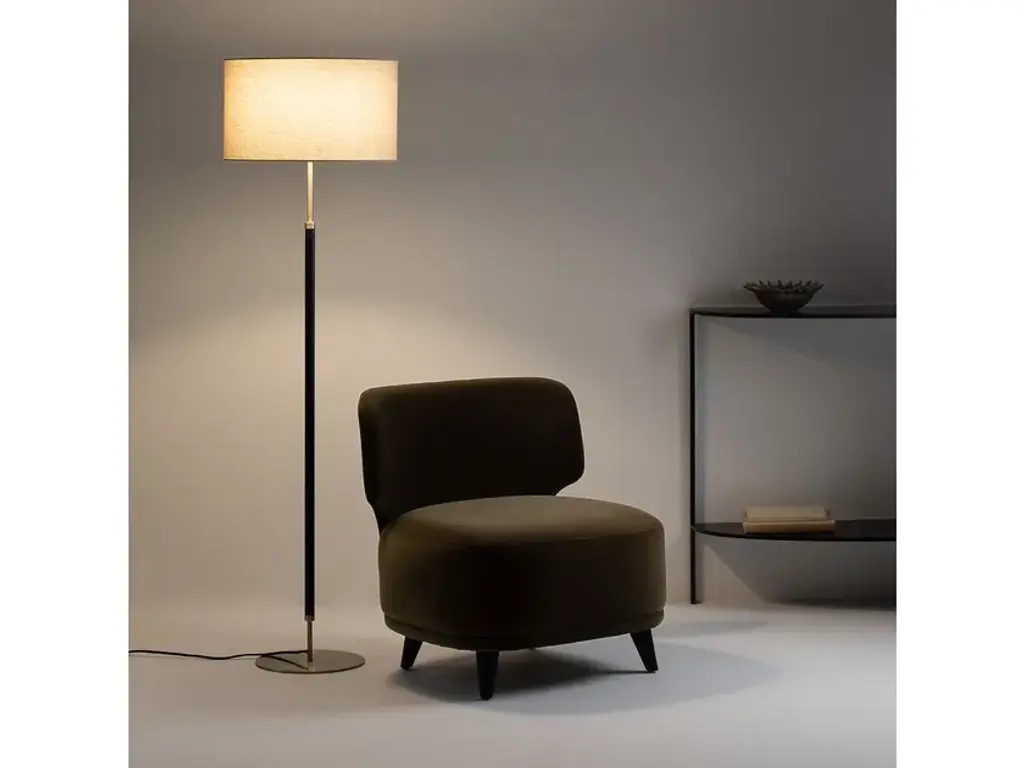 A linen lampshade with a traditional design, the JIHANA floor lamp dares to combine eclectic materials: the base is covered with a very elegant faux leather with sophisticated brass details.Product Details:Iron base covered in brass and imitation black colourLinen lampshadeE27 socket for 8W max bulb, not supplied