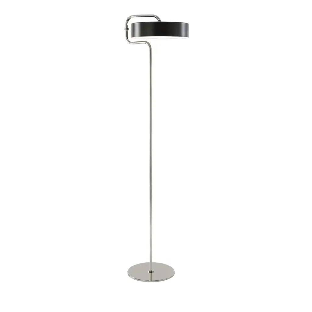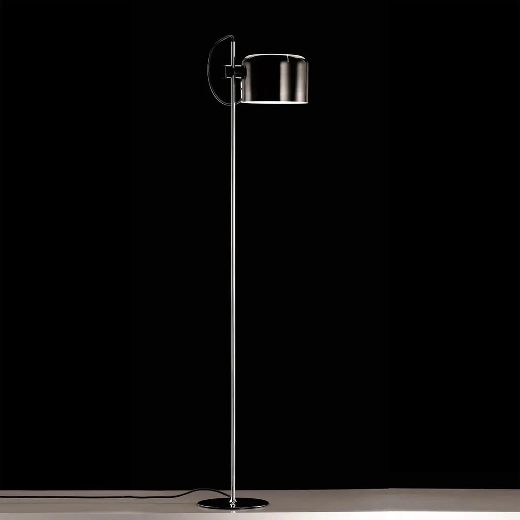 Floor lamp 'Coupé' designed by Joe Colombo in 1967.Floor lamp giving direct light, lacquered metal base, chromium-plated stem, adjustable reflector in lacquered aluminium. Manufactured by Oluce, Italy.The Coupé series, designed by Joe Colombo, was initially conceived as a variation of the Spider family, created by the same designer, of which it has kept its base and stem. The simple, ingenious mechanism that connects the stem to the head makes it possible to direct the beam in several directions, by moving the dome up, down and sideways.In 1968, Coupé won the “International Design Award” of the American Institute of Interior Designers in Chicago. It is part of the permanent collection at both the MoMA in New York and the “Neue Sammlung” Museum in Munich.Available in two versions, with either a semi-cylindrical or a semi-spherical dome, over the years, many models of Coupé have been created (ranging between the historic table lamp to the floor and wall lamps), becoming one of the most renowned and appreciated Oluce collections.Materials and color:Lacquered metal baseChromium-plated stemReflector in lacquered aluminium.Dimensions:D 28 cm x W 28 cm x H 140 cmTechnical information:2 x max 100W (E27)+ 1 x max 24W (LED)This lamp is wired for Europe, if used in US or any other country the client will need to convert it.Founded in 1945, Oluce is the oldest Italian design company in the lighting sector still in operation today. Oluce lighting’s design aesthetic is crisp, linear, and decorative. A subtle, intellectual beauty that over the years has led the company to produce some of the more recognizable and admired iconic lighting in the world. Oluce, already participating at the 9th Triennale in Milan, throughout its long history, has received numerous acknowledgements including two Golden Compass awards, two Design Awards and the Gold Medal at the 13th Triennale in Milan. Its lamps appear in the most important permanent design collections worldwide.Oluce’s expertise reveals its unparalleled manufacturing excellence which transforms into objects an untiring technological research into the potential of light. Each lamp is a milestone along this journey. Over time, from unusual materials, original designs and new lighting sources ensued revolutionary iconic designs by Tito Agnoli, Joe Colombo, Marco Zanuso, Ostuni e Forti, and Vico Magistretti, who since the 50s, have been rewriting the history of lighting. Recent collections reaffirm Oluce design and decorative approach, expressed through the signs by Italian and international designers such as Angeletti & Ruzza, Francesco Rota, Nendo, Victor Vasilev, Nicola Gallizia, Christophe Pillet, Mist-o and David Lopez Quincoces.