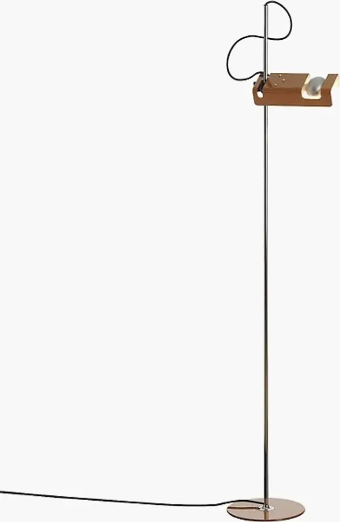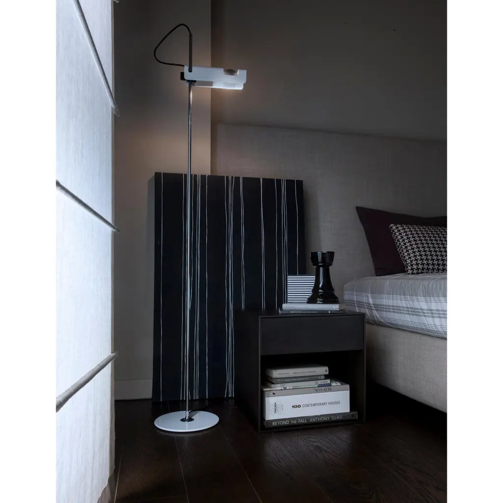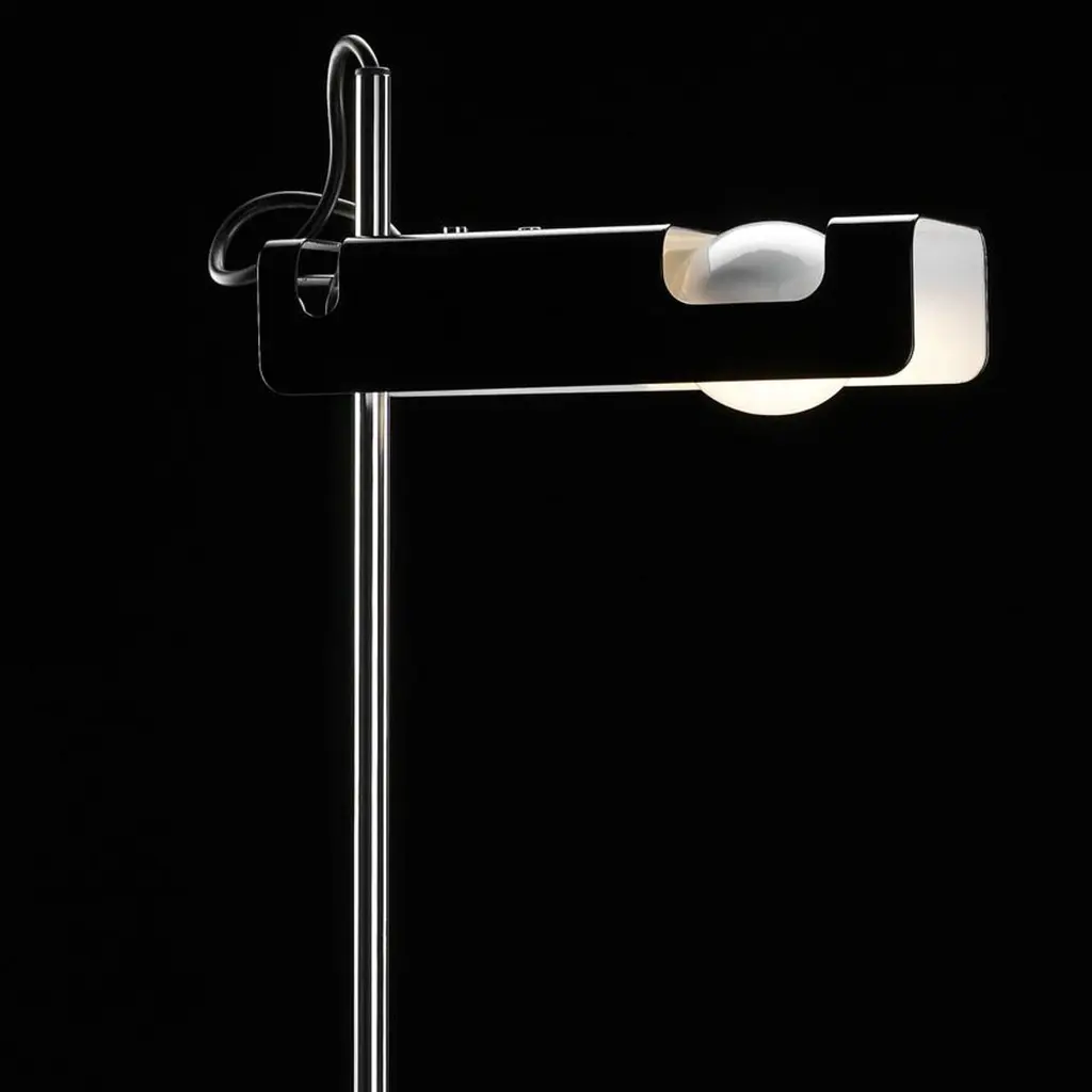Floor lamp 'Agnoli' designed by Tito Agnoli in 1954.Floor lamp giving direct light, lacquered metal base, chromium-plated stem, adjustable reflector in lacquered aluminium. Manufactured by Oluce, Italy.Table or floor lamp with stove-enamelled sheet metal reflector purposely designed to take a special horizontal spot light bulb. A plastic joint allows the reflector to tilt. In 1967 Spider won the Compasso d’Oro award. It is part of the permanent collections of the Milan Triennale, the Philadelphia Museum of Art, the Kunstmuseum of Düsseldorf and the “Neue Sammlung” Museum in Munich. In 1972 it went on show at the “Italy: The New Domestic Landscape” exhibition in New York.Materials and color:Lacquered metal baseChromium-plated stemReflector in lacquered aluminiumVariations:Also available as a table lamp model.Available in white color.Dimensions:D 18 cm x W 30 cm x H 140 cmTechnical information:1 x max 48 W (G9) Founded in 1945, Oluce is the oldest Italian design company in the lighting sector still in operation today. Oluce lighting’s design aesthetic is crisp, linear, and decorative. A subtle, intellectual beauty that over the years has led the company to produce some of the more recognizable and admired iconic lighting in the world. Oluce, already participating at the 9th Triennale in Milan, throughout its long history, has received numerous acknowledgements including two Golden Compass awards, two Design Awards and the Gold Medal at the 13th Triennale in Milan. Its lamps appear in the most important permanent design collections worldwide.Oluce’s expertise reveals its unparalleled manufacturing excellence which transforms into objects an untiring technological research into the potential of light. Each lamp is a milestone along this journey. Over time, from unusual materials, original designs and new lighting sources ensued revolutionary iconic designs by Tito Agnoli, Joe Colombo, Marco Zanuso, Ostuni e Forti, and Vico Magistretti, who since the 50s, have been rewriting the history of lighting. Recent collections reaffirm Oluce design and decorative approach, expressed through the signs by Italian and international designers such as Angeletti & Ruzza, Francesco Rota, Nendo, Victor Vasilev, Nicola Gallizia, Christophe Pillet, Mist-o and David Lopez Quincoces.