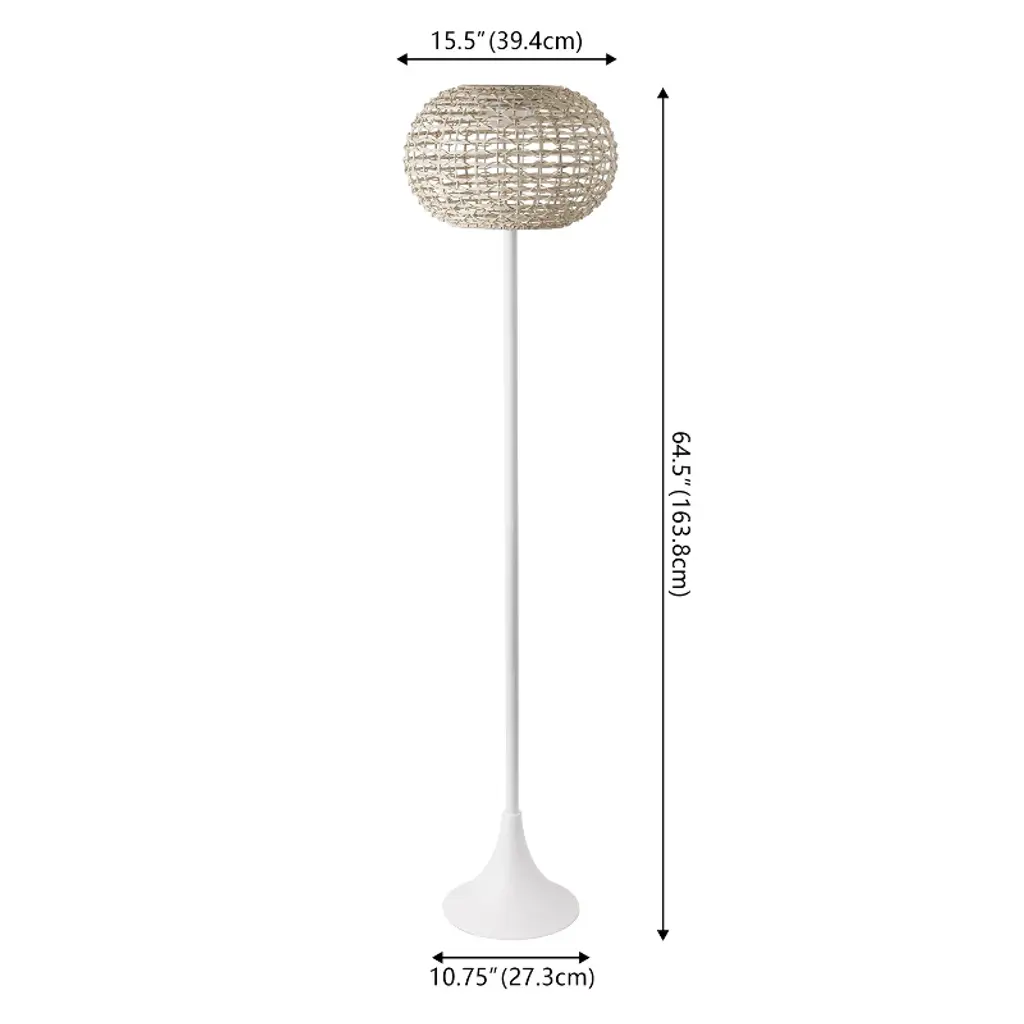 Jonathan Y Jaemin 58" Modern Coastal Faux Rattan Integrated Indoor/outdoor Led Solar Powered Floor Lamp, White/cream