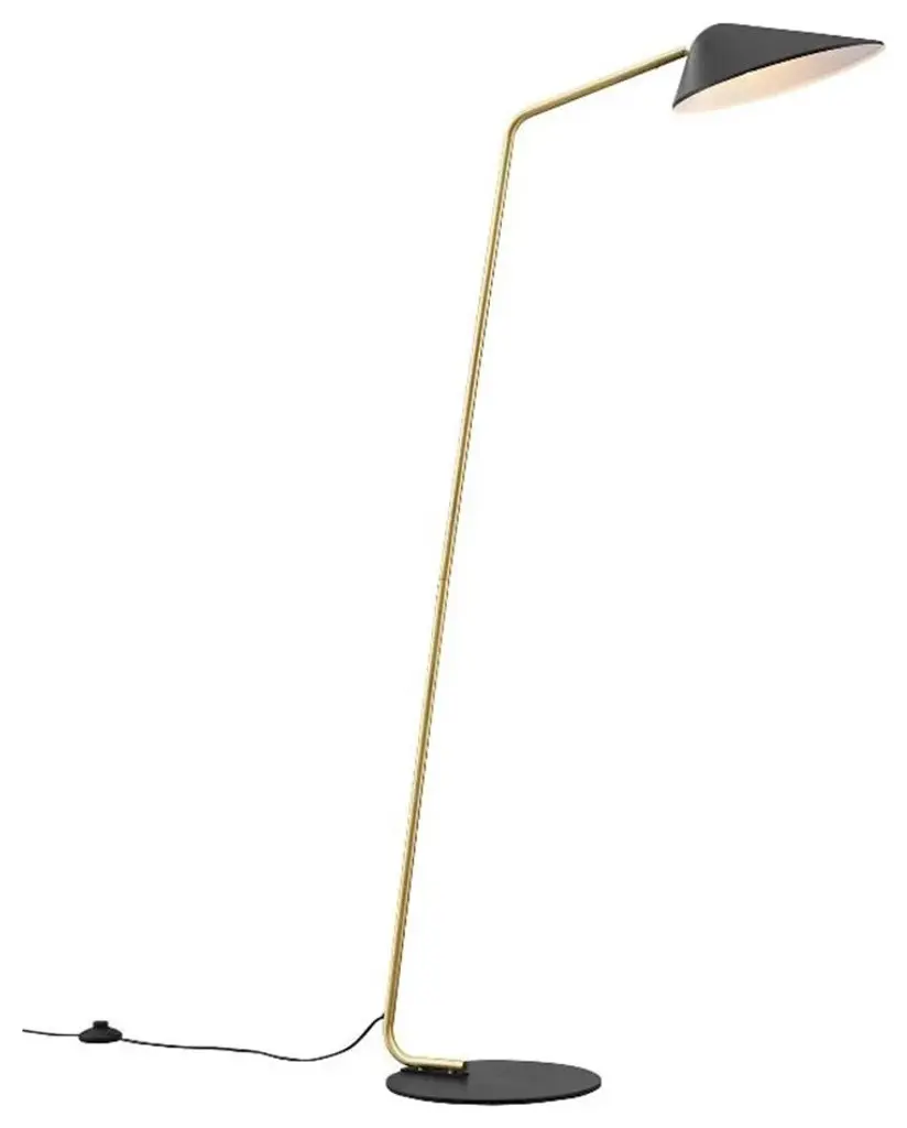 The design integrity of the Journey Standing Floor Lamp assures artful and functional illumination in your dining room, living room, or bedroom. This contemporary floor lamp features a sleek powder-coated swivel metal shade making it an efficient office reading light. This streamlined standing lamp complements a variety of decors, from mid-century modern to minimalist contemporary. With a deftly angled, satin brass rod, this living room lamp shines a light in any corner. Journey comes equipped with a power cord with an On/Off foot switch. Journey Floor Lamp requires 1 E26 bulb, 40W max, or LED equivalent (not included).Set Includes:One - Journey Standing Floor LampFloor LampSatin Brass RodPower CordBulb: 1 E26 40W Max (Not Included)LED CompatibleAssembly RequiredOverall Product Dimensions: 29.5"L x 12"W x 58.5"HBase Dimensions: 6"L x 4.5"W x 1"HShade Dimensions: 12"L x 12"WCord Length: 79"LShade metal coated in matt black/white, post and base metal in satin brassProduct Color : BlackProduct Weight : 10LBs