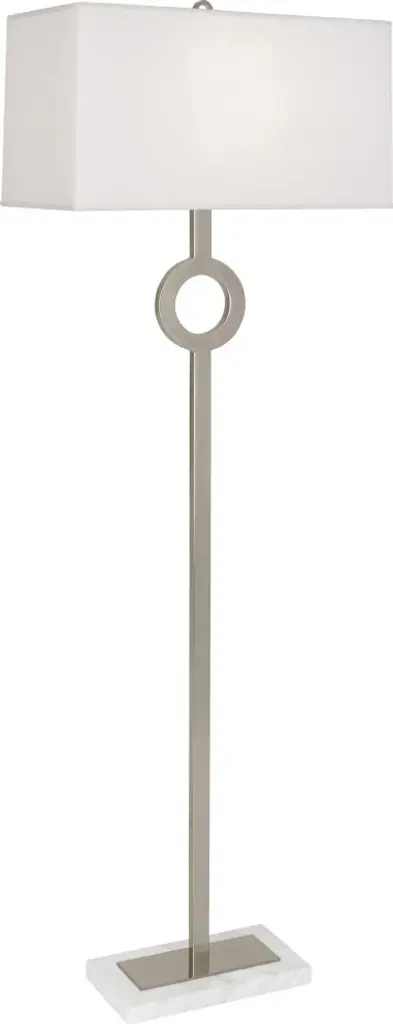 This handsome floor lamp embraces a downtown metropolitan esthetic, standing tall in gleaming metal in its well-proportioned, skyscraper-esc structure that is perfectly finished with a white linen shade.