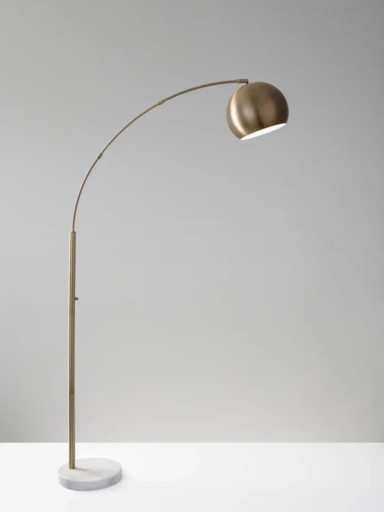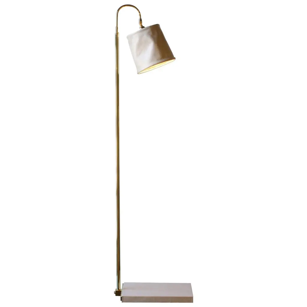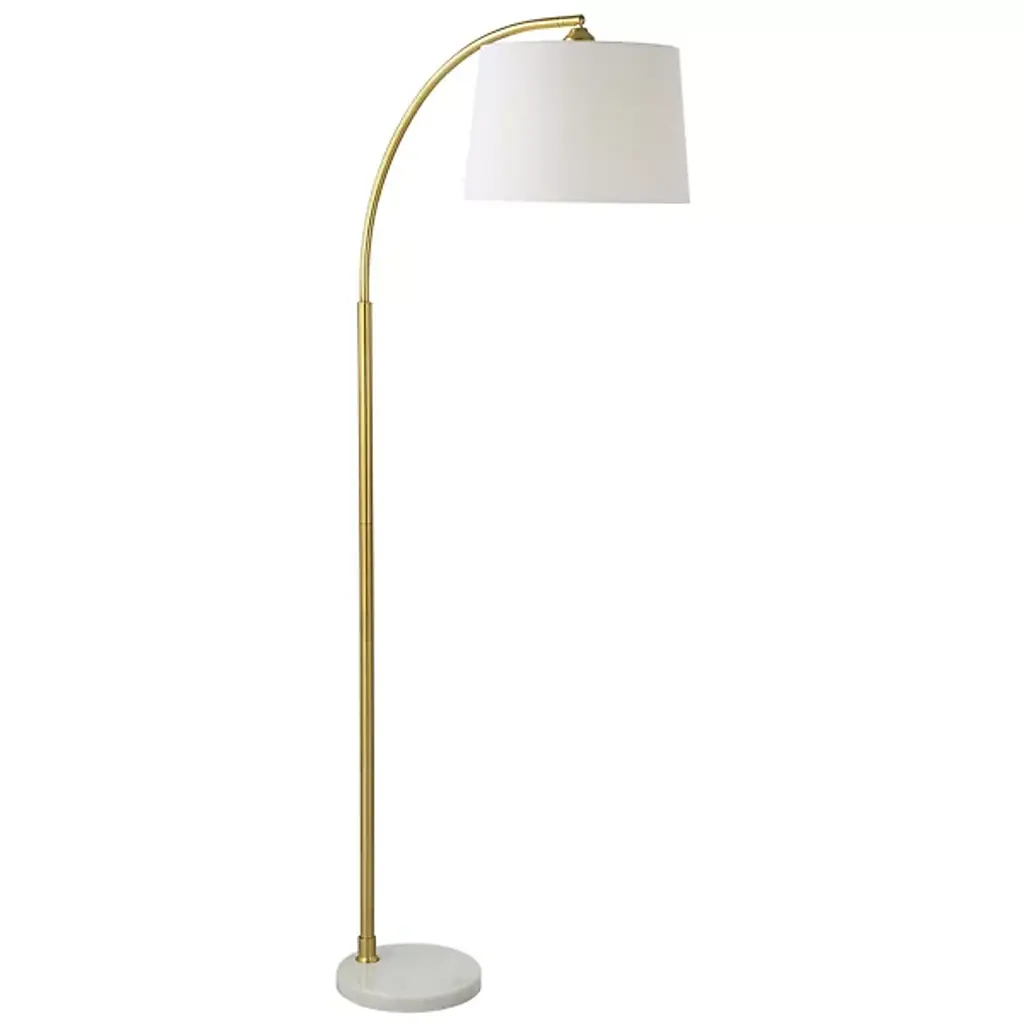 A striking mix of modern materials, this lamp combines a white marble base with a slender antique brass stem and white textured drum shade. We love the way it looks on a desk — not only illuminating the space with a soft light but lending a sense of style and sophistication as well.