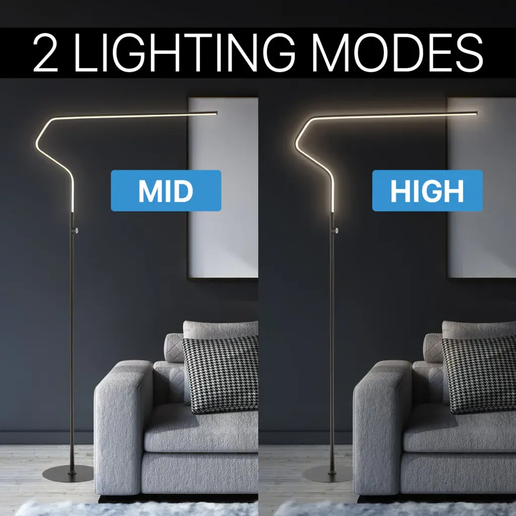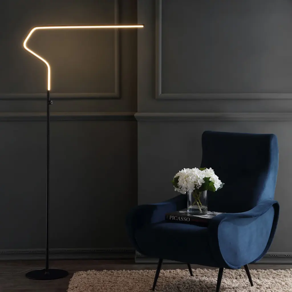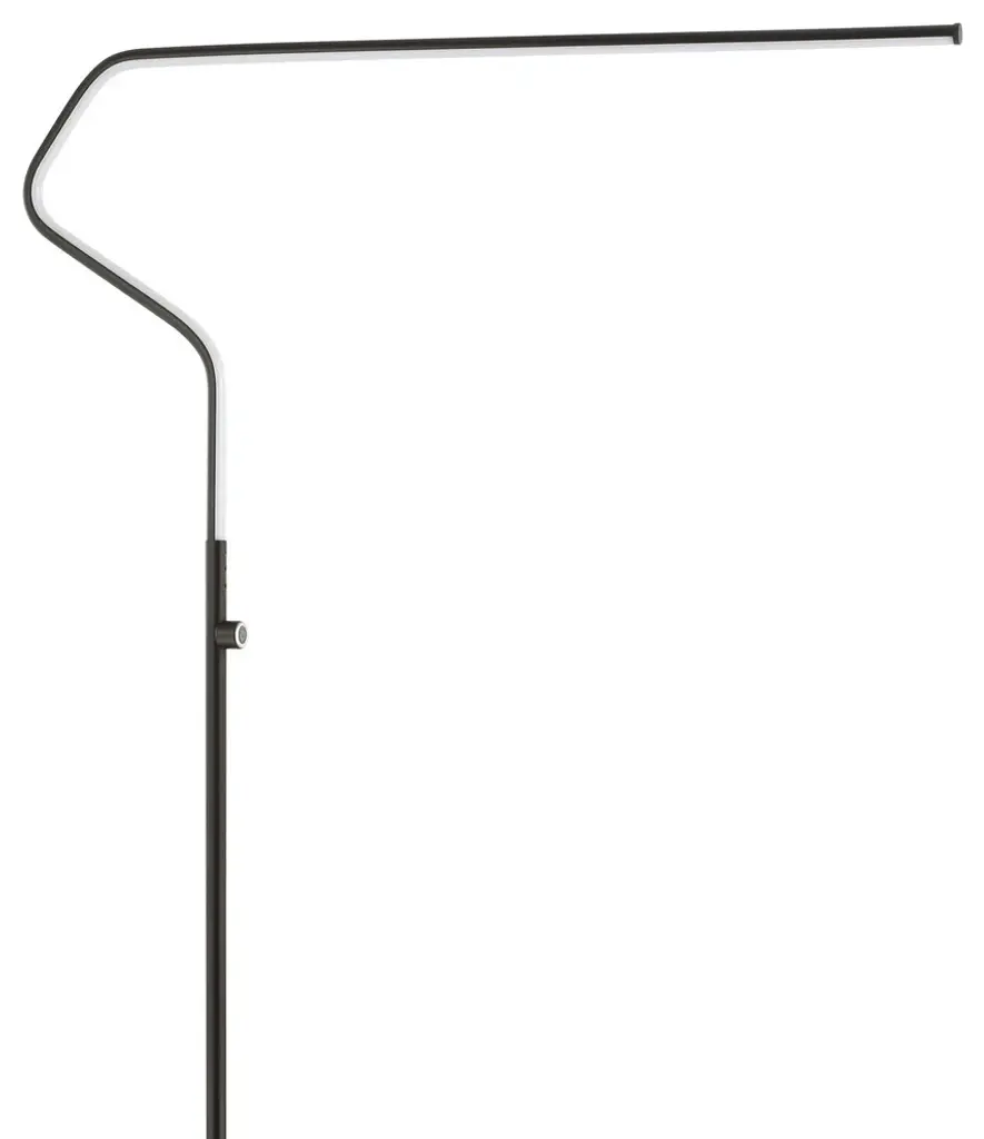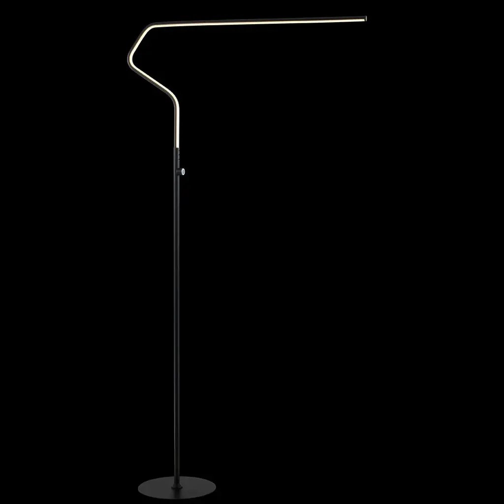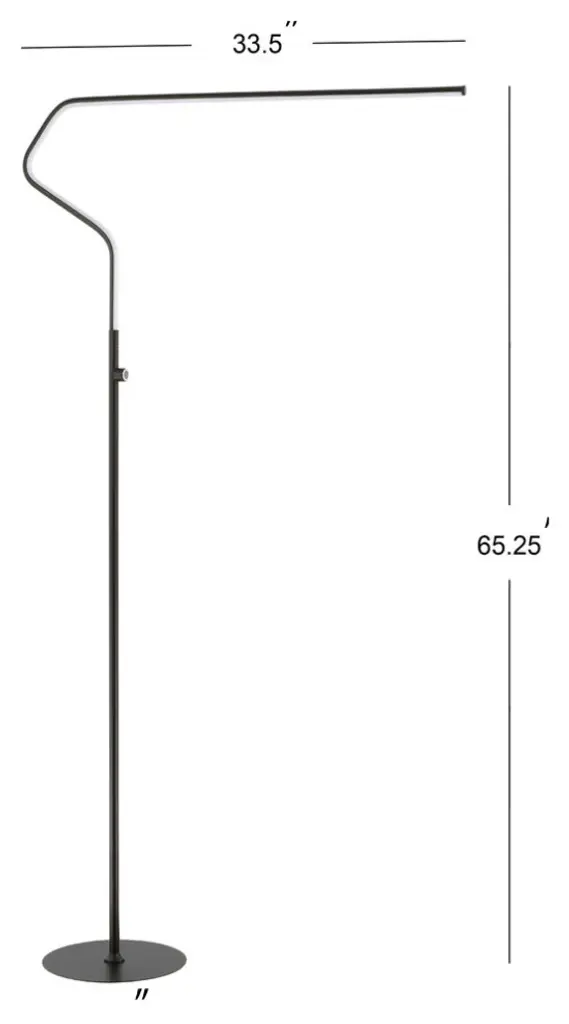 Featuring a unique linear body and a beautiful silk-wrapped cord, we love this floor lamp in a modern office space. Its integrated LED light and touch sensor make it energy-efficient and easy to use. A subtle, sleek source of light.Features:• Ideally for a reading nook or workspace, the angle of the shade is designed to give focused light• 72" black silk cord with standard USA 2-prong plug• Touch Sensor dimmer• Integrated 20W LED Bulb• Built-in LED lights, so no bulbs are required • Color: Black• Body Material: Metal• Includes: One (1) lamp(s)• Assembly RequiredDimensions:• Lamp: 65.25 inches high x 33.5 inches wide x 9.75 inches deepAbout us:You see a lamp.We see a decorative work of art.A perfectly curved shade casts a dramatic shadow on a floor. A silk cord you never want to hide. LED lightbulbs: as easy on the environment as they are on the eyes. The JONATHAN Y Lighting collection considers every detail from impeccably sourced materials to designer styling. And our prices are so attractive, we''ve transformed a functional necessity into a fashion accessory.JONATHAN Y Lighting - a fashion revolution in home decor.