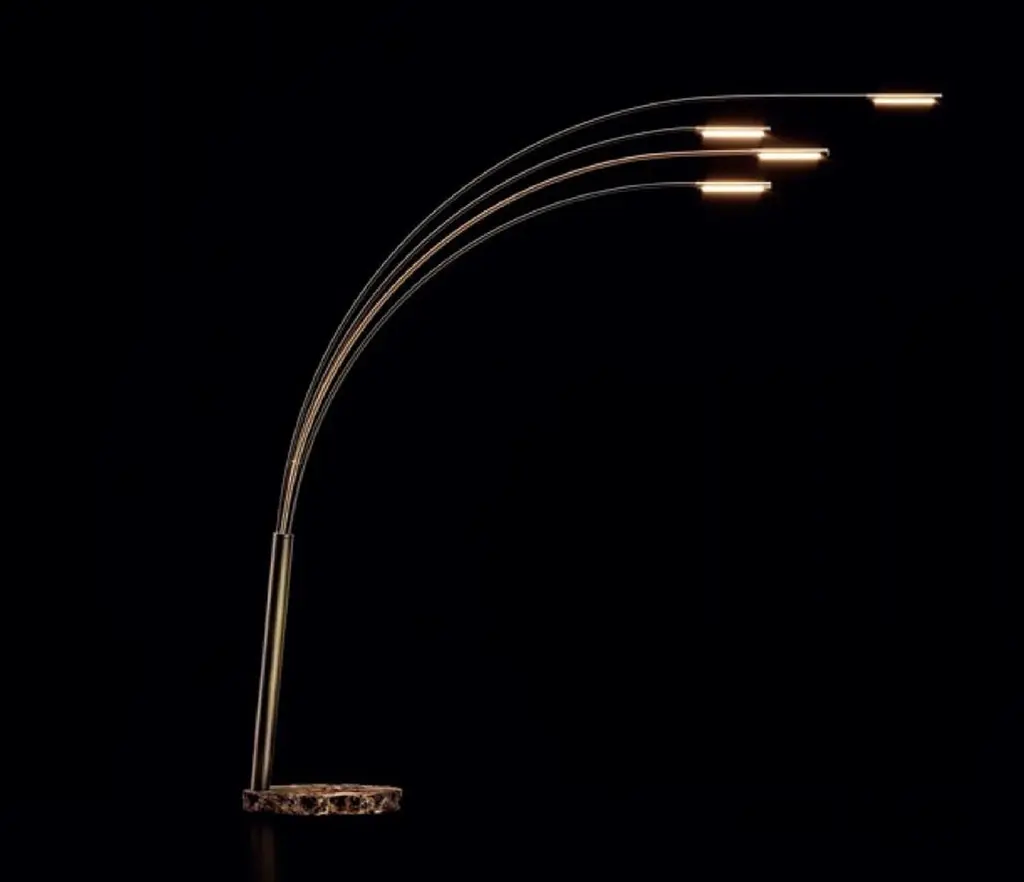 The Juncos floor lamp, designed by Emmemobili, is a refined and minimalist lighting piece. Featuring four slender brass stems with integrated LED strips, it offers a subtle yet elegant presence. Its solid marble base adds both sophistication and stability. The lamp is operated via a convenient foot switch, with a dimmable version available upon request. Thanks to its airy and ethereal design, Juncos works beautifully beside a sofa but can also be placed in various areas throughout the home. Combining timeless materials with modern technology, it creates a warm and stylish atmosphere. Juncos is a perfect choice for those seeking a lighting solution that balances design, function, and elegance—making it an ideal addition to contemporary living spaces.
